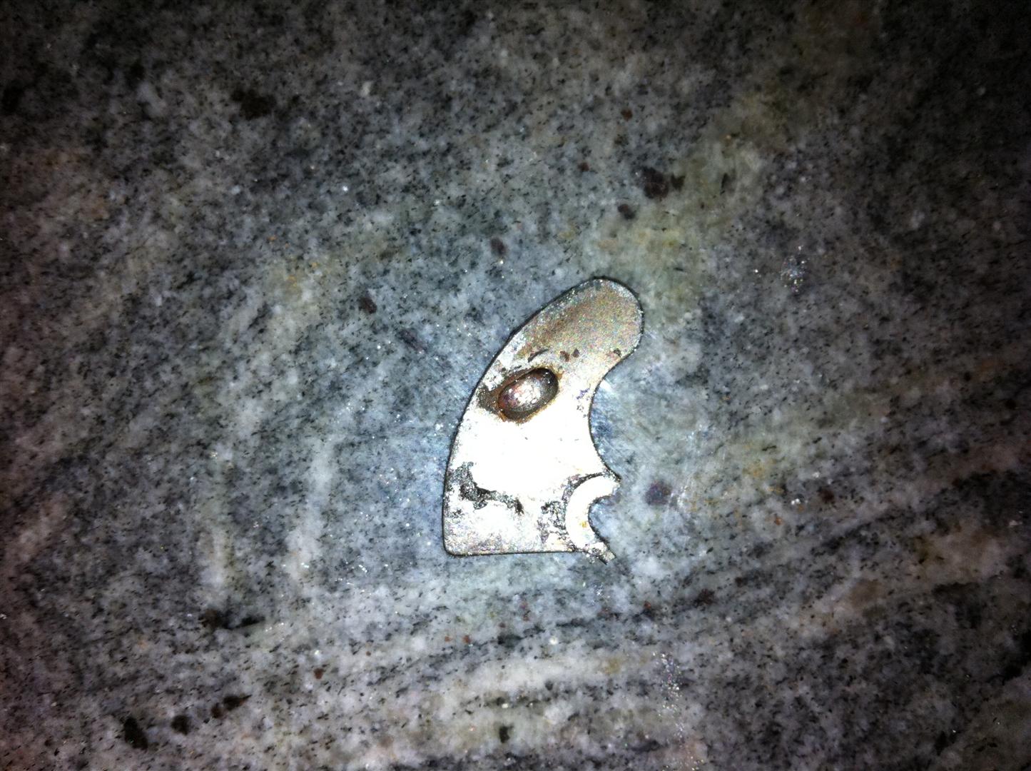 Damn! Looks like it threw a rod! Can't say I've ever seen that before. A weight came adrift. Either the spring was broken for a while, the pivot pin broke, or the hole in the weight wore through. The weight then jammed between moving parts and the housing. Bang. It's likely the problem was impending for some time. I've seen it before. The Cap'n |