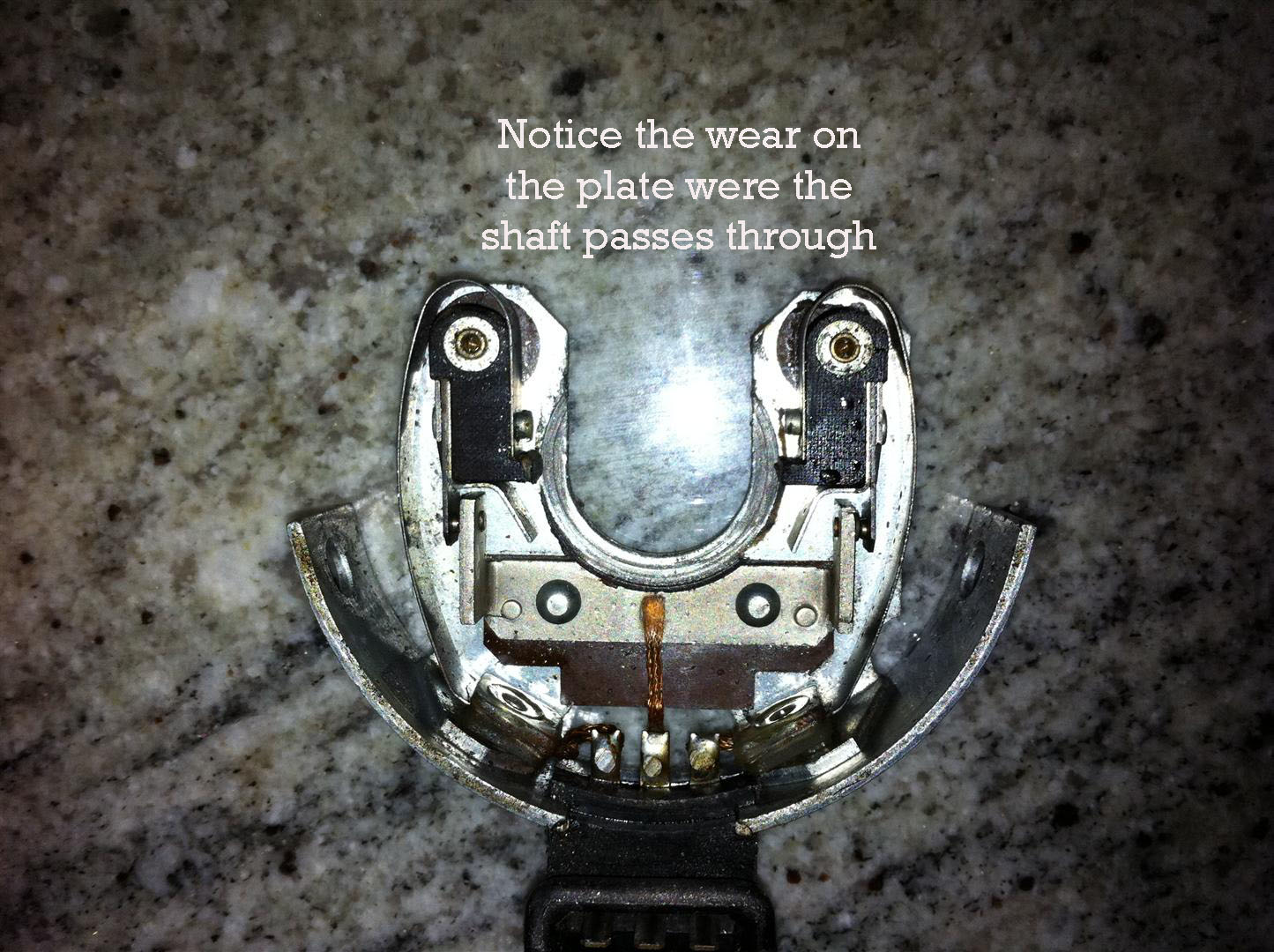 2.0 Djet. I changed out the plate due to a disconnected ground about a year ago and cleaned and lubed everything at that time. It has worked fine since then, til yesterday. Went to start the car and it did not sound right. Then no spark. Fiddled with a few things to make sure the wiring on the coil did not rattle loose etc, tried again and the distributer rotated 180 degrees and exposed this fancy new hole. Towed it home and dismantled the distributer this morning to find the following. It had been wearing away for a while based on the metal shavings. The shavings are not brass / bronze from the normal wear of the rotor /cap. Notice the wear on the FI trigger points plate too Part numbers for reference Here is a picture of the car for good measure. She looks real good (sitting in the garage!) (IMG:style_emoticons/default/headbang.gif) Totally random but could you tell me the tire size you're running? |