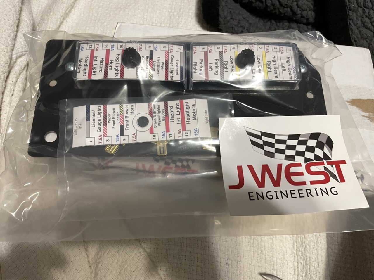 I had one that developed a short I installed the upgraded fuse board about 10 years ago, maybe more, and had noticed this once or twice happen but had beena while , recently in the evening the other day it happened, i was able to isolate it to a specific location, so i dropped the board and testing the spades and the wires on the in and out sides, the wiring itself is tight to the spade on the board, no bad wires or connectors, but when moving those the spade coming out of the board seems to be loose or moving and i can then it looses contact and lights will go out then in, at this point i am sure its a bad connection inside the board. Withought pulling the whole board and taking it apart (might have to , or get a new one) i am wondering what it looks like on the inside, is it possible for it to separate or disconnect or crack loosing the internal continuity from the incoming side to the out going side? the fuse it tight to the socket that it slides into, but messing with it can cause the issue . i suppose im going to have to pull the board and get a look inside. Anyone have a picture of the inside of the board? or anyone have one of these develop an issue over the years? suggestions? Phil Phil ; Not sure if this is related but did you use the instrument dimmer on these occasions by any chance ?,mine was not working properly then dimmer finally failed and popped the fuse so no instrument lighting ,pretty sure the foglight system will go out also but mine weren't wired up back then but think it there is a connection there not 100% sure. I bought another light switch and that failed for the same reason,bypassed the dimmer as I had gone to LED lamps by then. Don't think the board is @ fault these are robust units. Cheers. Phil contacted me and provided a picture of his panel. It turns out he had a different brand of board, not from JWest. See picture below to tell the difference between JWest and the other brand. For anyone who does not know, the other company is gone, so I'm not disparaging an active competitor, just trying to identify the stuff I have made. Panelbilly, I don't know how a short could happen. Maybe it got an open circuit? But was it mine? The one above is the 5th one from the other brand that I've heard about having an issue. If it was mine I'd like to see the issue and get you a replacement. Hey update , i took your advice and contacted J-West, he immediately i mean right away emailed me after i sent a question off the website, as seen here it appears its not one of theirs but going above and beyond he offered to take a look and even repair it if needed!!! I want to say thanks for reaching out and making such an awesome offer!! But i think im going to buy the new J-west one and install it, and then have him take a look at it to see whats up. I probably installed that board 10 years ago, so putting a new one in will allow me to verify all my connections and wires too. also about the dimmer, i have had issues in the past with one and i installed a new one a couple years ago, but worth taking a look at as well. I am fairly certain this issue is the board internally. @JWest thanks for the awesome offer, ill be making an order for new board today. Phil EDIT - new board on order |