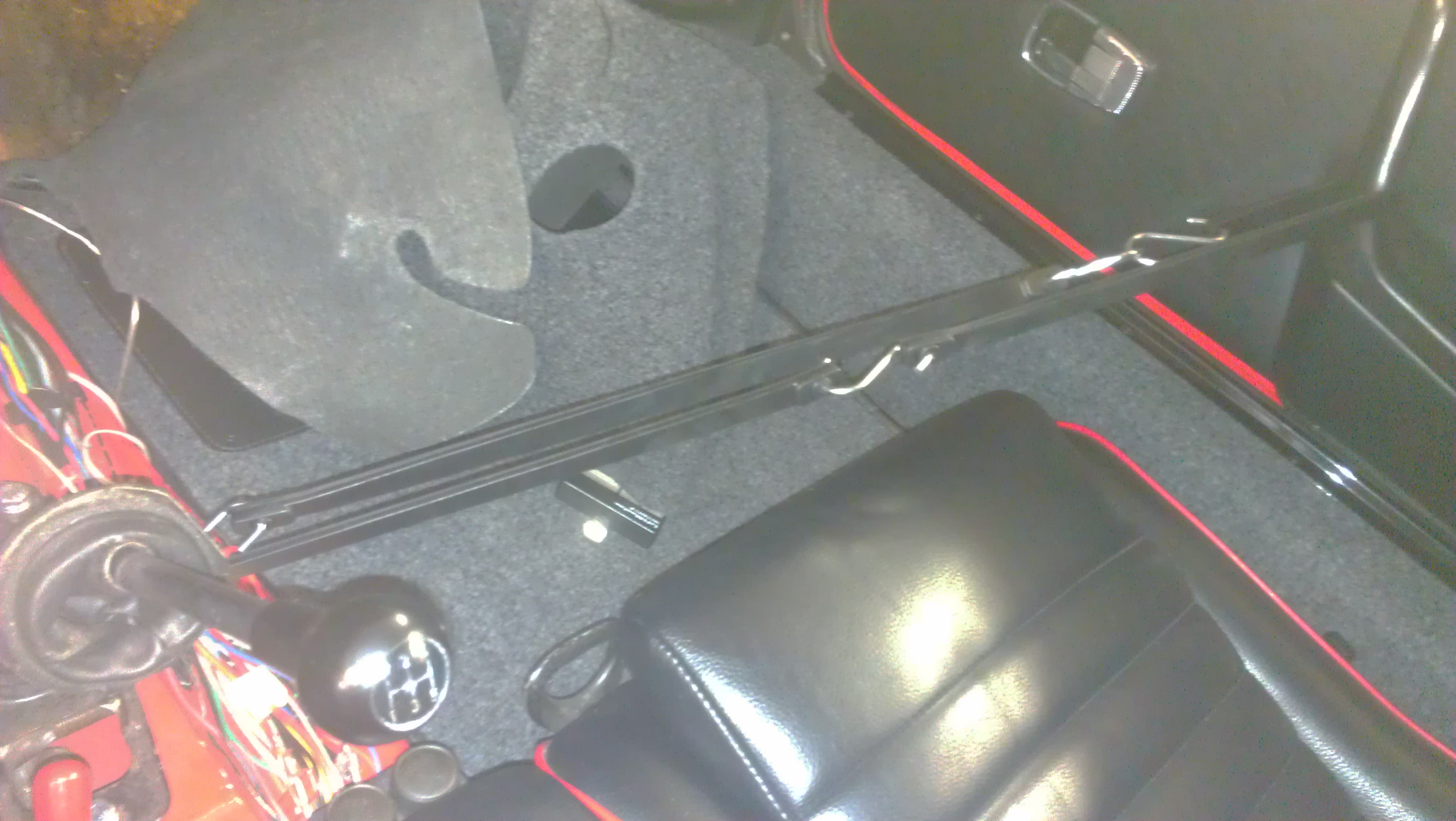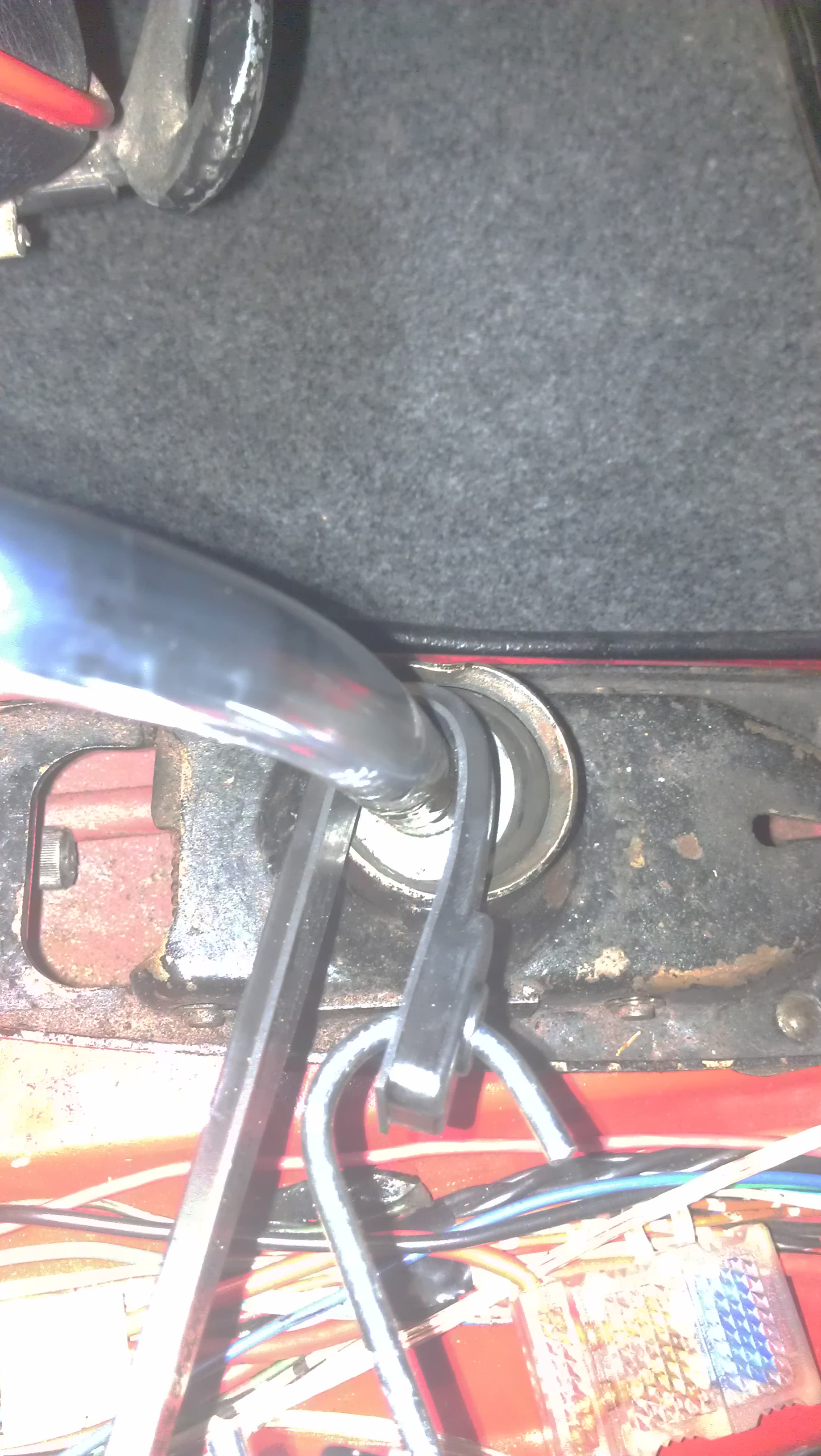 1. Remove the cover over the shift console. 2. Remove the carpet around the shifter. 3. Put the shifter in neutral, and loosen the pinch bolt on the shift rod. This is accessible behind the shifter. 4. Completely disconnect the shift rod by pulling the shifter back into the third gear position. You should see the coupler laying against the floorboard (like in the picture below). 5. From under the car, put the side shift console on the transmission into 4th gear. This is done by pulling down on the shift rod and pulling it rearward. 6. Back inside the car, put a rubber bungee cord around the base of the shifter, and loop the other end over the right hand door handle. 7. Make sure that the bungee stays at the base of the shifter. 8. Lift the shift rod inside the tunnel up, and slide it into the coupler on the bottom of the shifter. This is the hardest part of the job. The hole is small and both parts sag downward. You may have to use needle nose pliers or something like them to hold them up. 9. Once you have the coupling done, move the shifter as far forward as it will go. 10. From under the car, move the shift console into the neutral position. 11. Remove the bungee cord from the shifter, then move the shifter until the part below the curve is vertical. Tighten the pinch bolt. 12. Reinstall the carpet and the cover over the shift console. You are done, go drive it. (IMG:style_emoticons/default/driving.gif) Why does this work, you ask? There are 3 fore and aft "shift planes" in a 914 transmission. Reverse/First, Second/Third, and Fourth/Fifth. When you place the transmission into Fourth, you are providing enough clearance to hook up the shift coupler, and you are insuring that the transmission end of the shift linkage is in the fourth/fifth shift plane. The bungee cord around the shift lever pulls the shifter into the fourth/fifth shift plane and holds it there while you slide the rod into the coupler. Then putting the trans back into neutral allows you to set the proper location of the neutral gate for each shift plane by making sure that the lower portion of the shifter is vertical. Give it a try and see if it works for you. |
