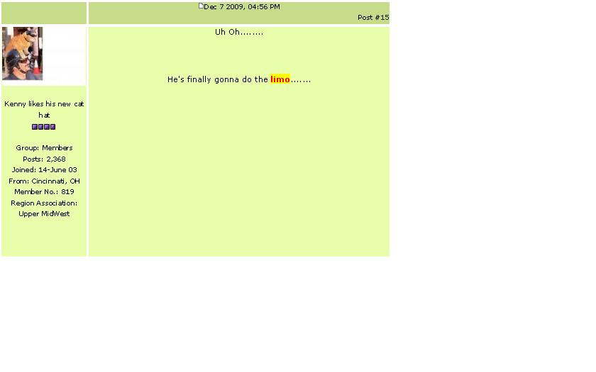 http://www.914world.com/bbs2/index.php?sho...939&hl=limo Hmmm..... mebbe I ought to use that crystal ball more...... O crystal ball, where's my next Job??? "Limo Driver"? that can't be right..... Attached thumbnail(s) |
