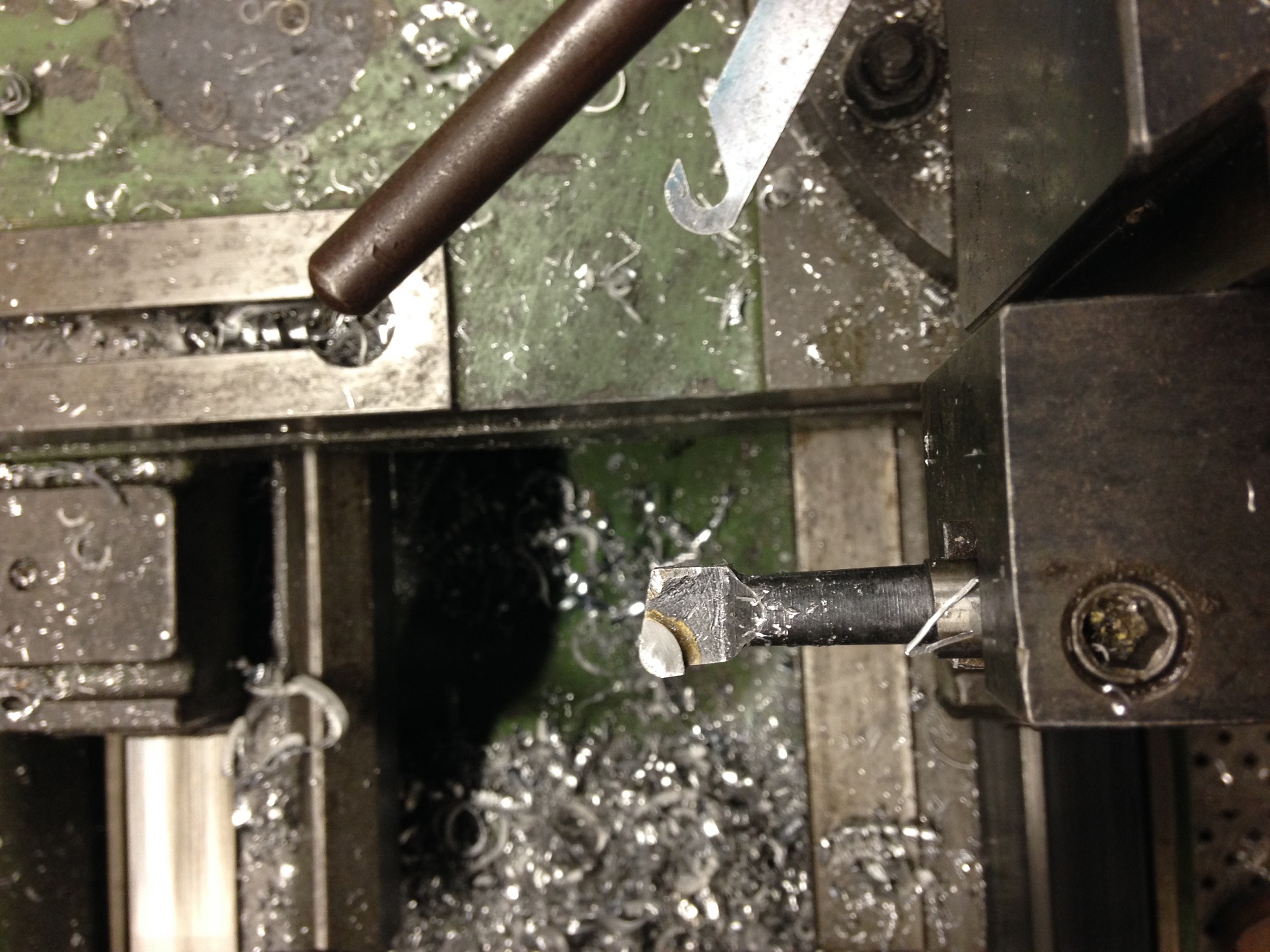At lunch I had a bit of time to turn the sway bar bearing mounts down. I'm pretty happy how they turned out-press fit is good to 0.0005" per telescoping gauge/mic (right in the middle of manufacturer requirements) and machined surface finish is pretty good. Didn't have any radius cutters, so a trashed old one got ground down. It actually worked pretty well besides a little chatter-a little thicker neck would have been nice. (IMG:style_emoticons/default/biggrin.gif) Getting better with this whole turning thing. Ran out of time to drill the mounting holes and cut the backer plate. Another day... |
