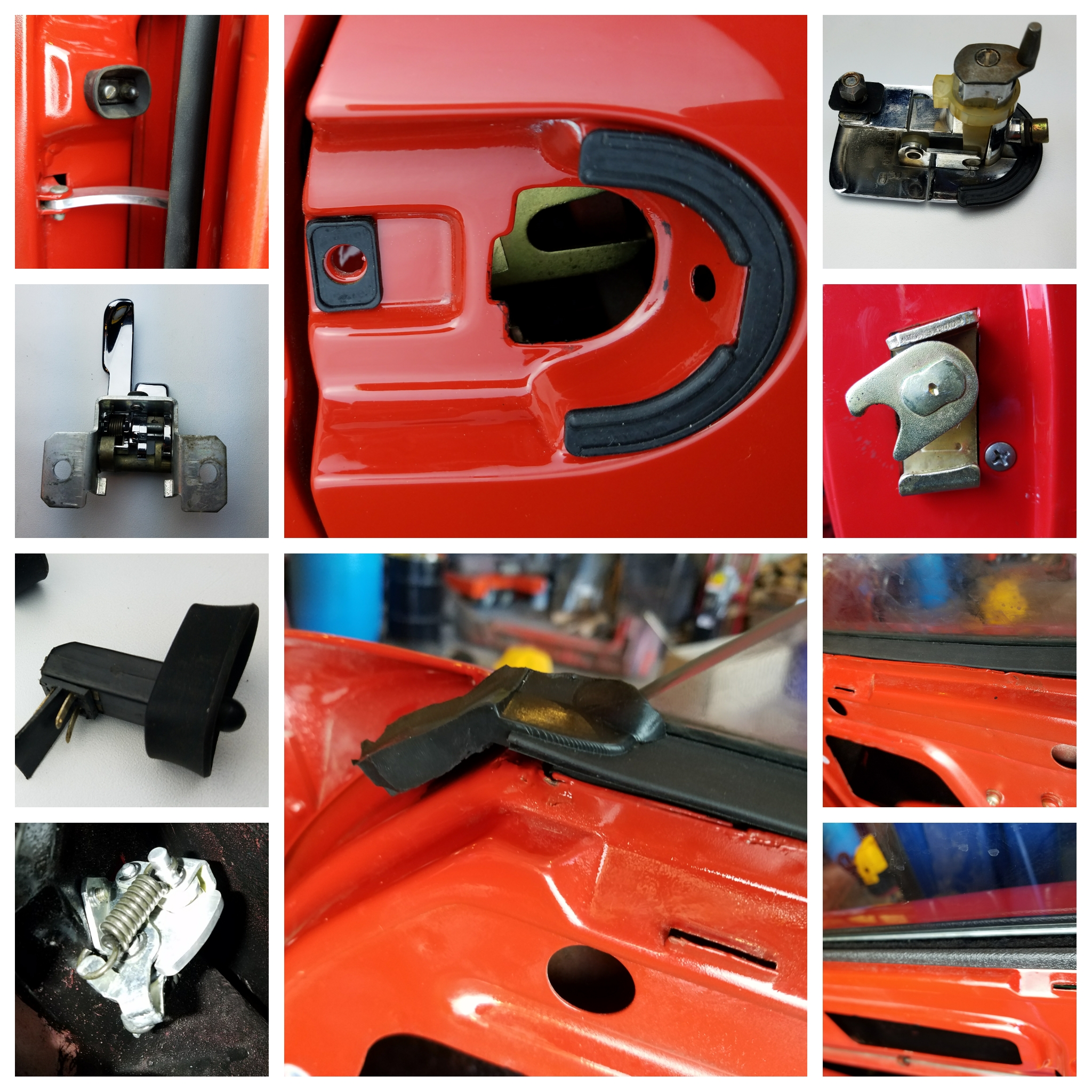 All new 914rubber parts on the door. Door stays rebuilt, the door handle didn't need to be rebuilt but I put new rubber seals in. Cleaned up the door switch and put on a new rubber piece. New door card clips and plugs. New triangle window seal, new aluminum track with fuzzy and outer scraper new inner fuzzy ..... (IMG:style_emoticons/default/dead horse.gif) you get the idea. Zinc plated the door mechanism