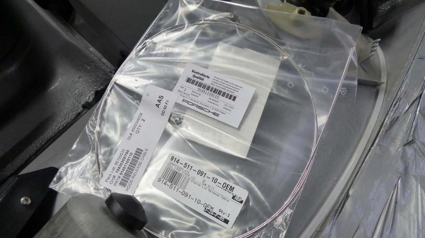 A couple weeks ago I took my ridiculously overpriced genuine key blanks to my local locksmith to have them cut. In the process, I discovered I had put two valet wafers in the rear trunk lock and none in the front. That was easy to swap. More important, it had me revisit the front trunk cable. I love 914Rubber but the wire they are using for these cables is too soft. Even with plenty of teflon lube in the tube, that cable felt sticky and springy and wanted to kink when feeding it through. It had a terrible feel and I was afraid would fail prematurely. I bit the bullet and sprang for an expensive OEM cable. Expensive, yes, but if I were sitting at a gas station with an empty fuel tank and a trunk latch that wouldn't open, $55 would seem a small price to pay to avoid the problem. This cable is noticeably stiffer with a slight spring to it and operates silky smooth. Money well spent I think. I discovered that the front trunk lock was binding when the handle was bolted in place. If you recall, I had to rebuild that section of the bulkhead thanks to its previous use as a rat latrine. I had to do two things to fix the problem. The first was to gently bend the steel tube the cable runs through to better align it with the mounted handle. The second was to oval out the mounting holes with a round file to allow the handle to mount slightly farther out to give the swaged fitting on the cable room to slide all the way in without hitting the tube. 1/16" is all it took and you can't tell by looking. Spacing and alignment are more critical than I thought on that mechanism. With those adjustments, the handle looks fine and the cable and lock operate smoothly. Now I can securely store my dead bodies without worrying about snooping people finding them. |