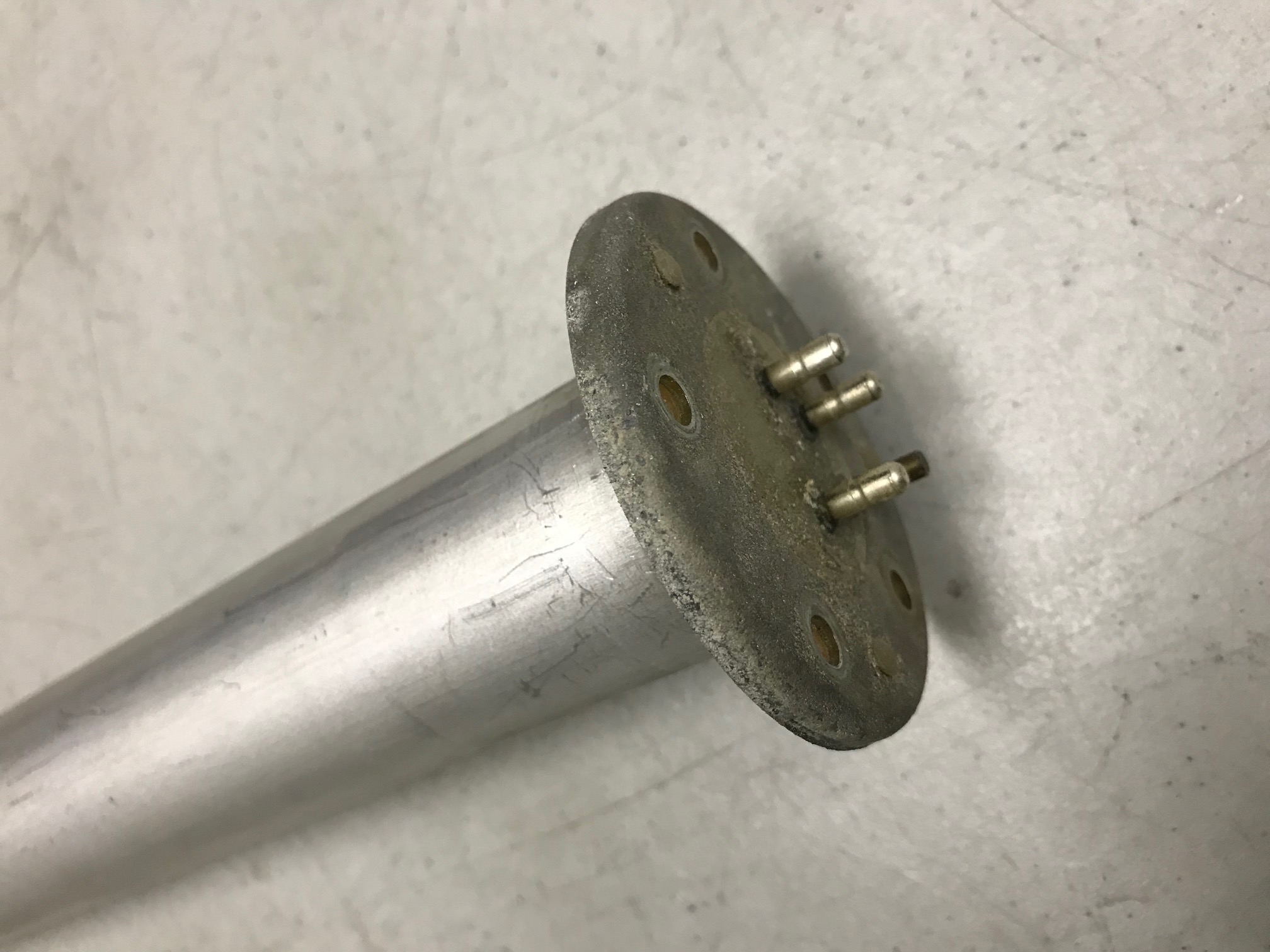 Last knight I was just being an idiot but I did finally figure out that the tube separated from the top mounting. Attached are some photos of the inner part of the sending unit. To me it looked absolutely clean. The center pole was shiny like polished stainless, and the three wires were intact. The float moves freely and when I measured the resistance again now it read 70 Ohms at empty and 6.4 Ohms in the full tank position. The thing is that this sending unit was also showing 1/4 tank even when full. I am beginning to think that the wires are in the wrong position at the gas gauge. Can anyone confirm the correct position of the wires at the gouge? I looked at the factory shop manual electrical diagram but it does not show which prong each wire connects to. Thanks, Bill. |