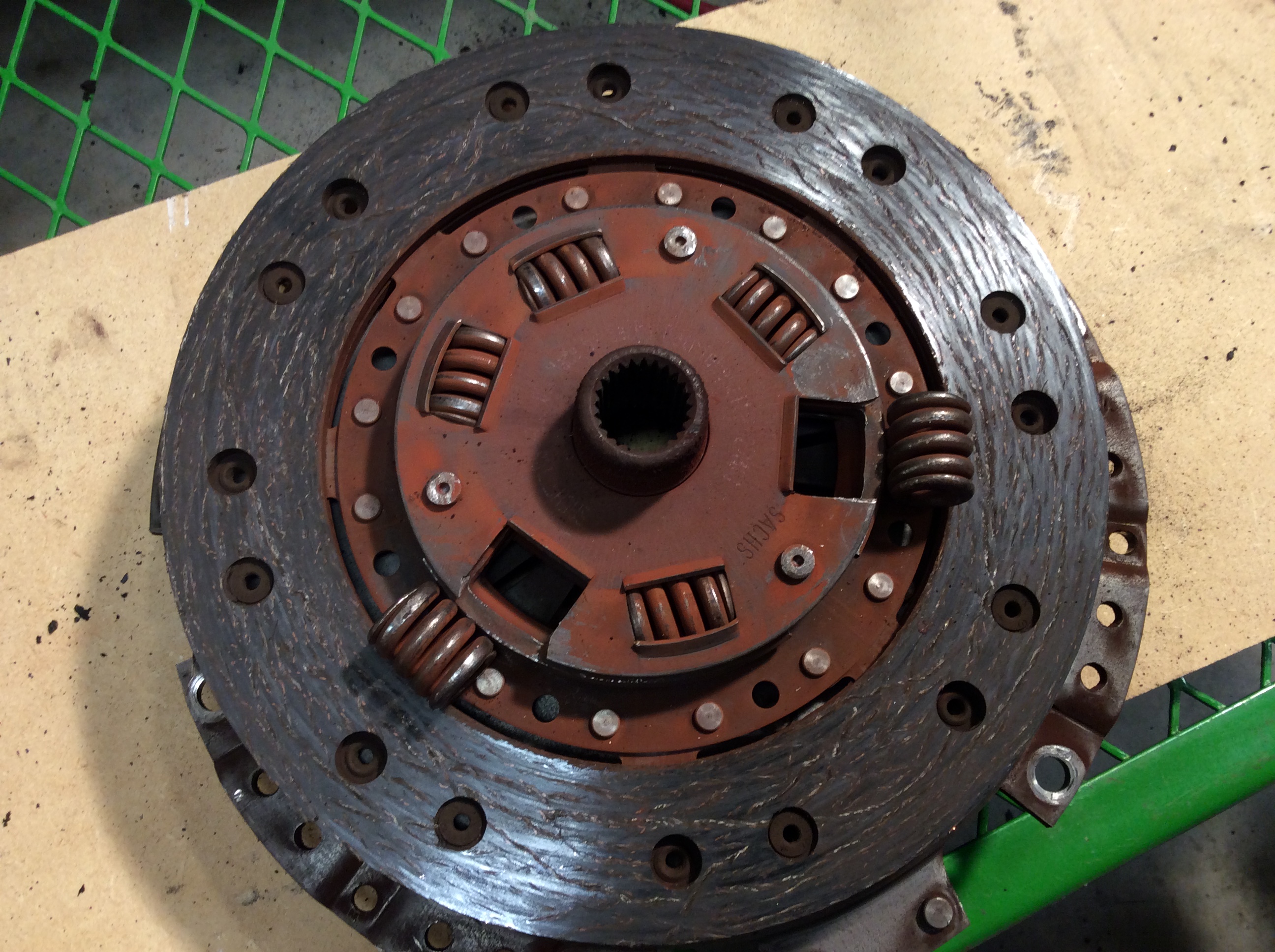 Judging by the wear on the pressure plate I would say its on its second (and last) life,make sure you carefully inspect/measure flywheel to make sure it is suitable for resurfacing,post a pic of it that would help,good luck. |