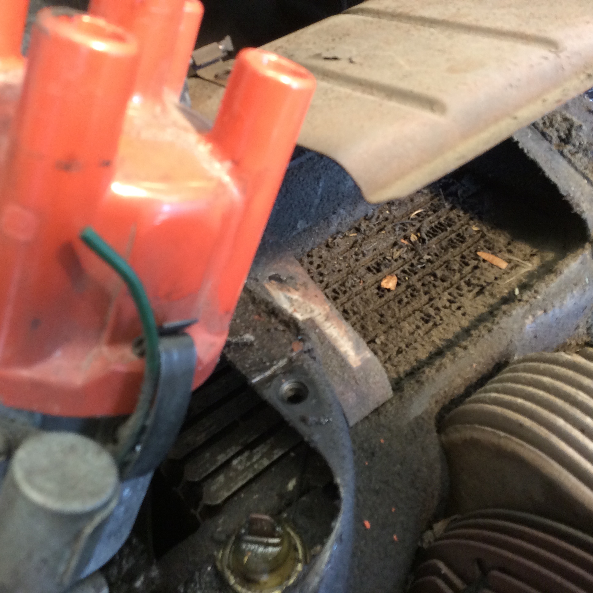 Having trouble confirming the source of all the oil on top as it is literally everywhere. Possibly coming from loose vacuum connections? Leak on the bottom is from my arch nemesis the taco plate. Pushrod tubes seem to be holding their own. Looking for thoughts on how best to clean all the crap off and out of the fins?? Can the oil cooler be cleaned or is it a lost cause? Thanks. |