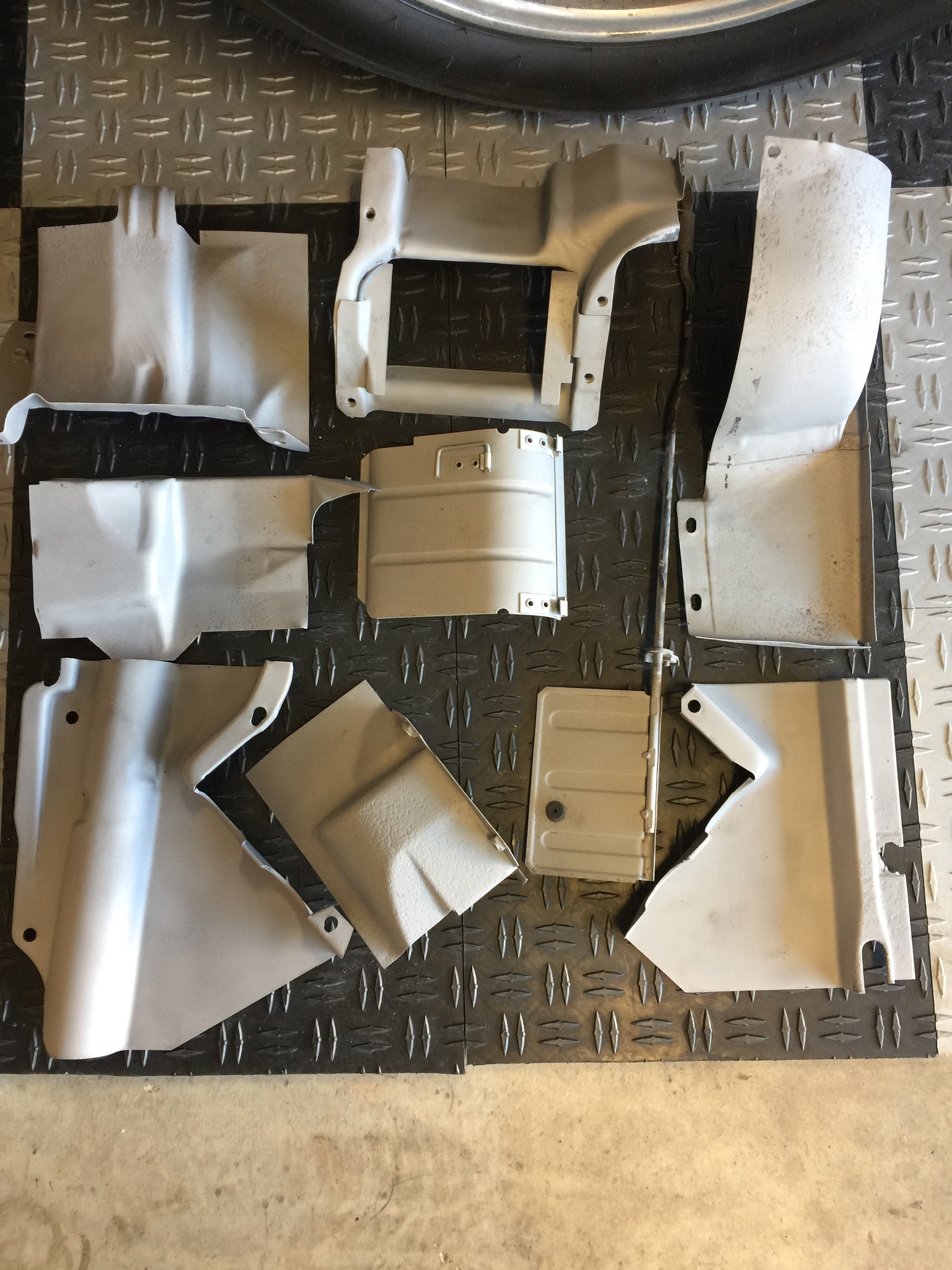 A little progress last night and today. Got the muck off all the engine tin and got some pieces blasted. Using medium glass beads and it seems to work well.
