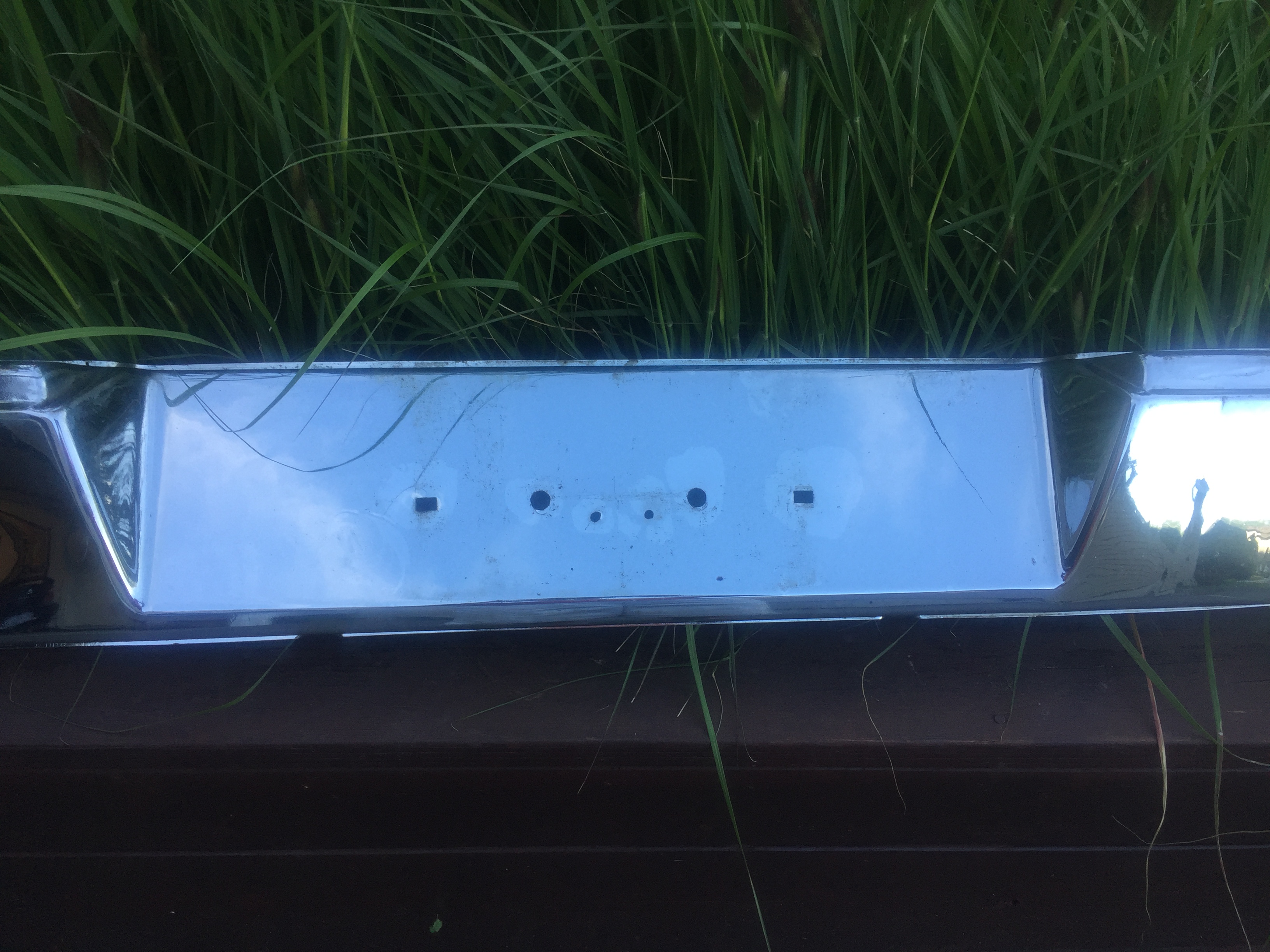 No rust early rear bumper. It has some damage, but it can be repaired, it’s not as bad as some that I have. The chrome is still very good. A couple of extra holes added ,behind the license plate when installed. $300. Plus shipping.