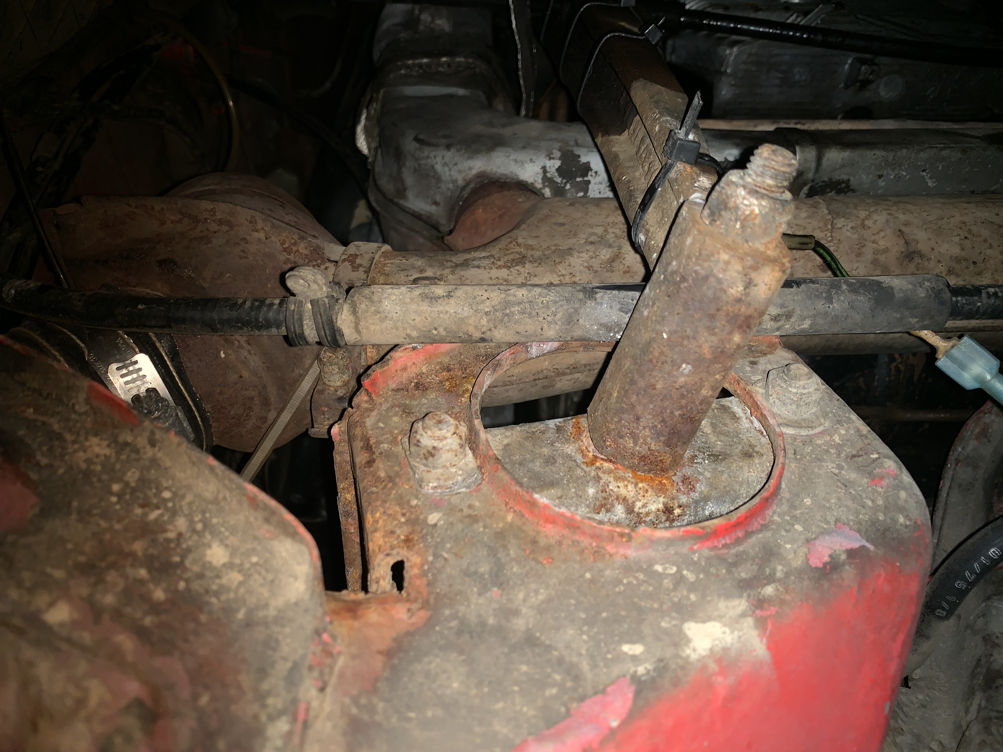 Noticed the engine bracket is bent. Not to worry, the engine will probably be dropped to replace and remove the oil cooler. Good times.... (IMG:style_emoticons/default/hissyfit.gif)