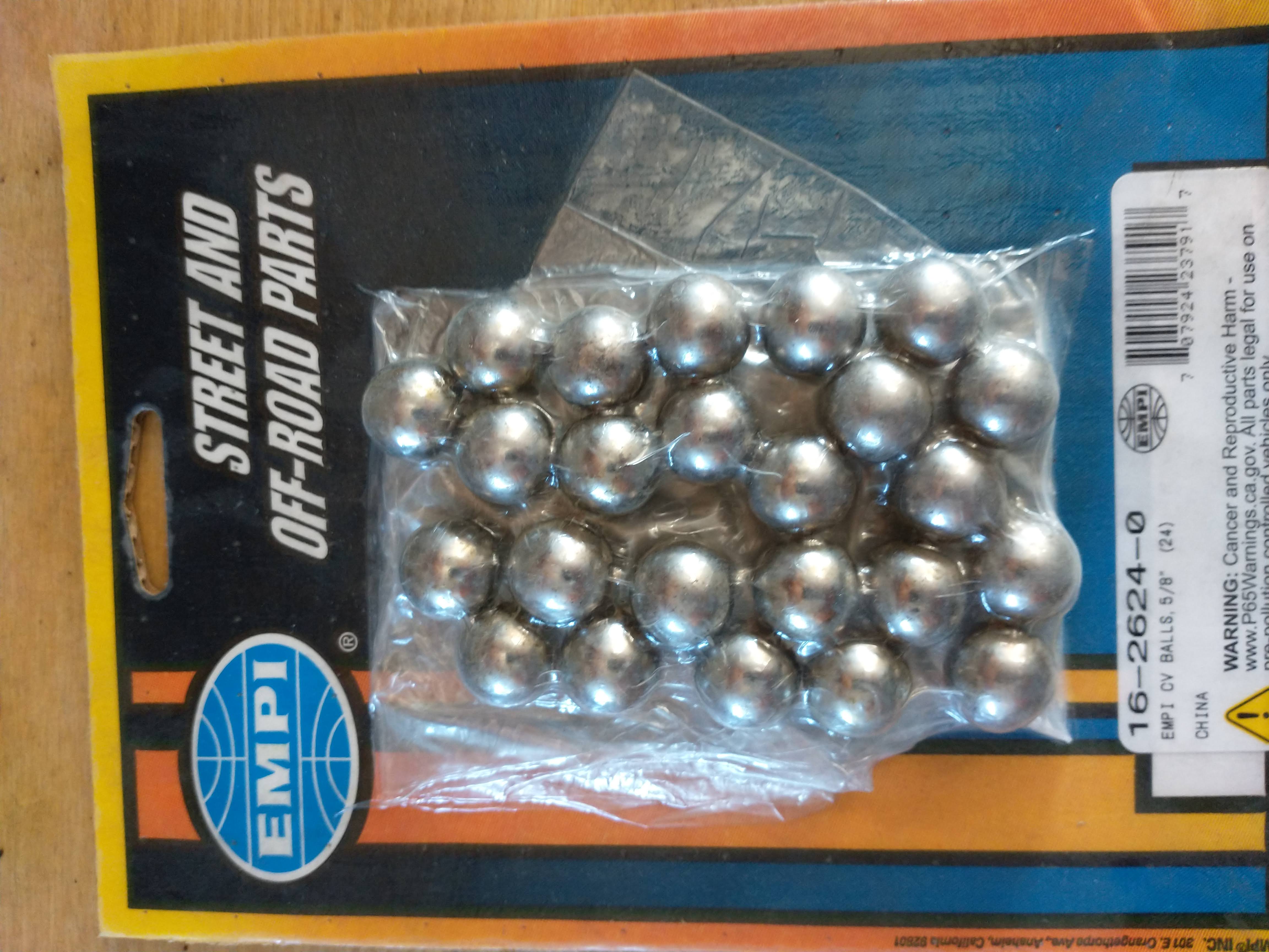 Does anyone have a single "marble"? My CV joint came apart earlier today and has only 5 ball bearings (is this a thing that people put these back together with one missing?) Anyway, WTB one bearing, please. holy cow! mine had only 5 as well! i got one from a friend but i should replace it if they are available. |