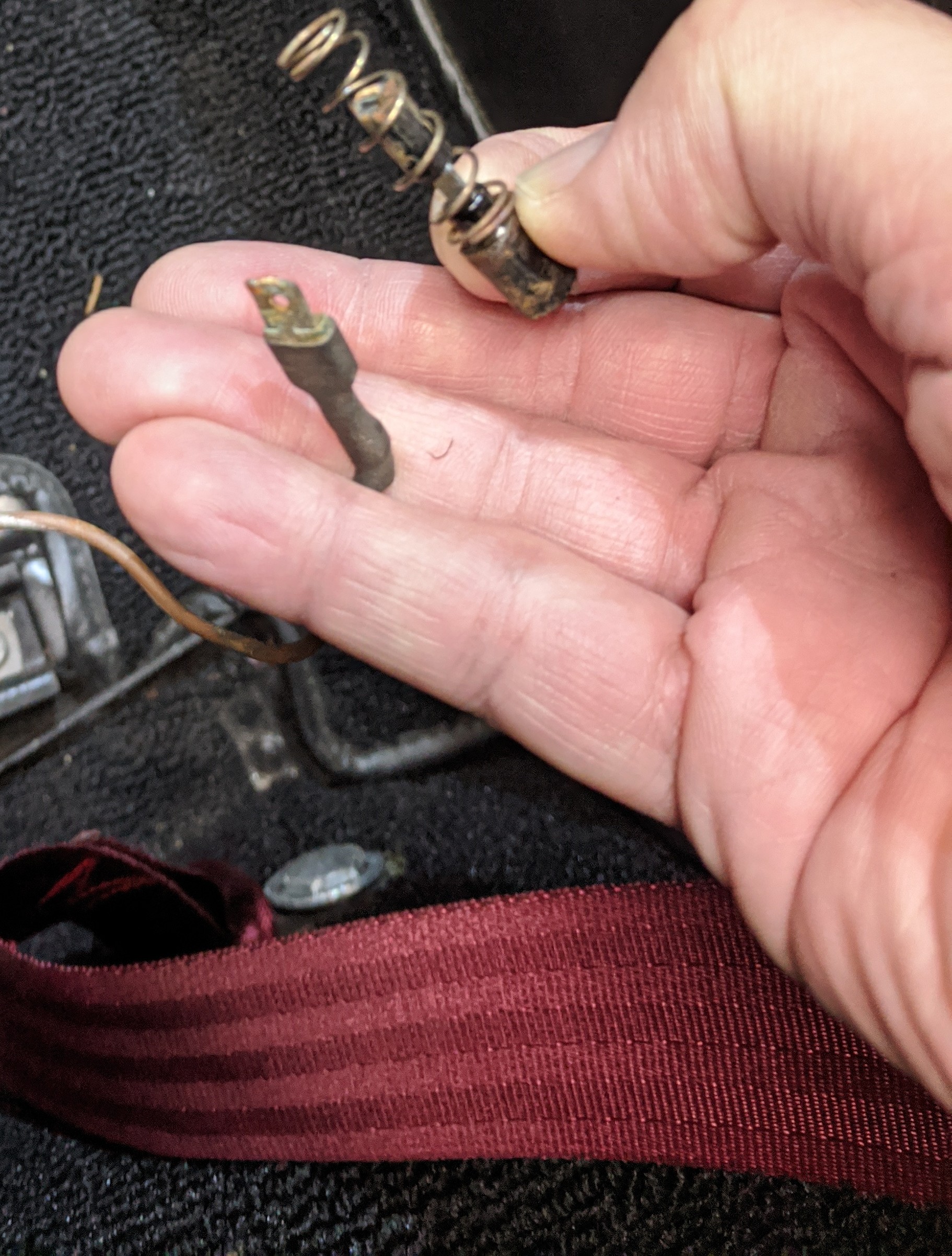 Did the ebrake ever work or is this a new issue? I removed the seat. The cable from the brake looked good. I wiggled it around a little and the brake works fine. Kind of concerns me so ce I didn't really do anything. While under there I found this second wire, what is it? Fasten seat belt sensor? It wasn't attached to anything. It was just kind of stuck in the hole on the floor near the base of the brake. Perhaps it was interfering? Maybe the wire to the brake light switch? Is it brown? |