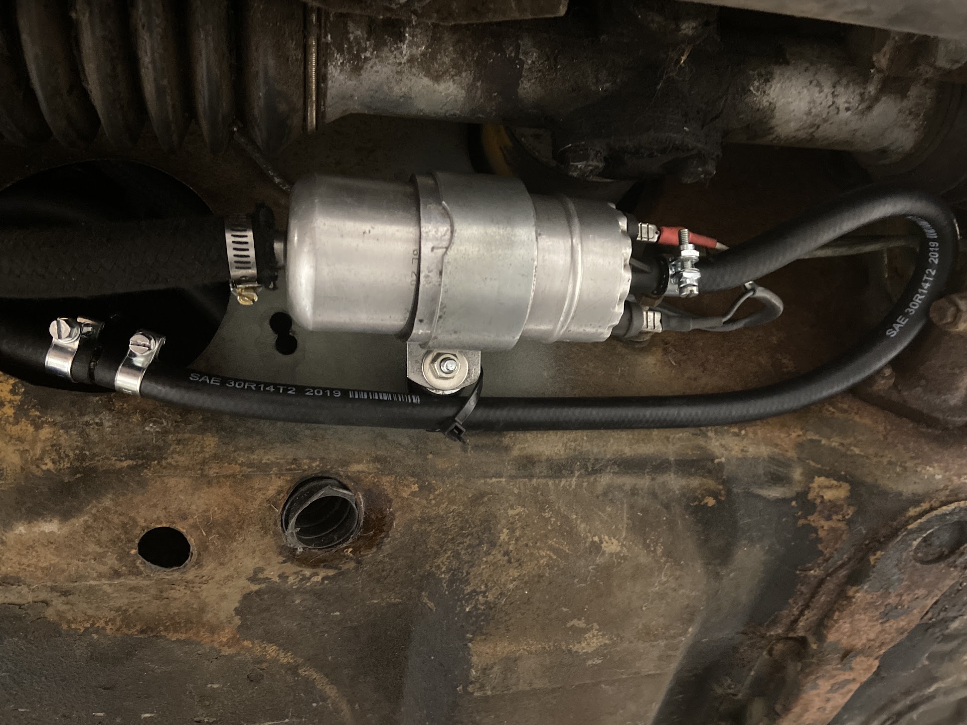 agree with all of the above. the front location solves the vapor lock issue also.... these pumps really are pushers... not pullers... so although the factory got away with motor bay installation... its because they kept the pump low and allowed gravity to do the pulling for the pump. front mounted is the solution and the reason the factory used that location starting in 1975 And don't neglect to install fuel filters, I mounted before and after the new front mounted pump to catch any "stuff" from the old fuel tank. |