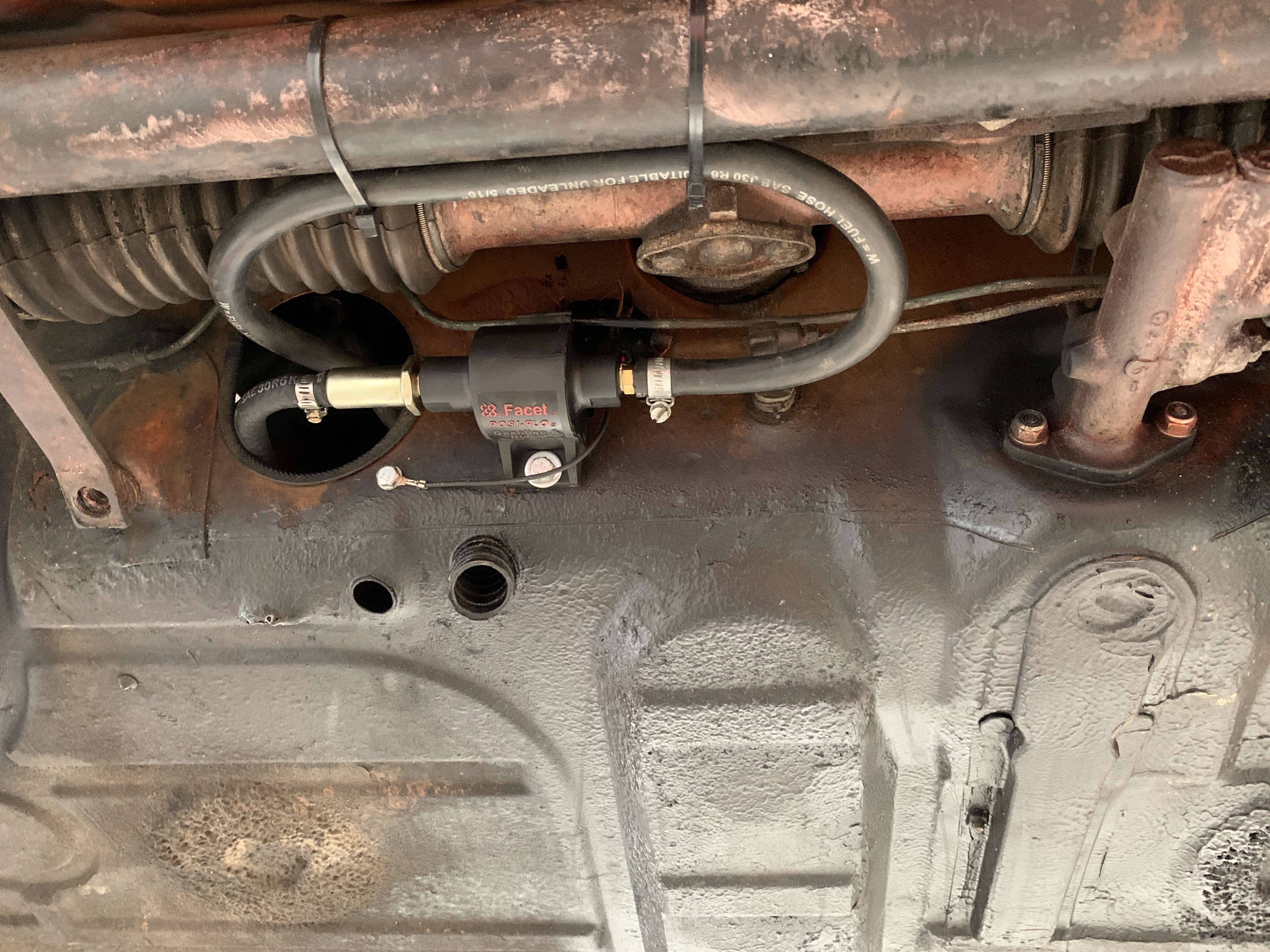 the front location solves the vapor lock issue also.... these pumps really are pushers... not pullers... so although the factory got away with motor bay installation... its because they kept the pump low and allowed gravity to do the pulling for the pump. front mounted is the solution and the reason the factory used that location starting in 1975 |