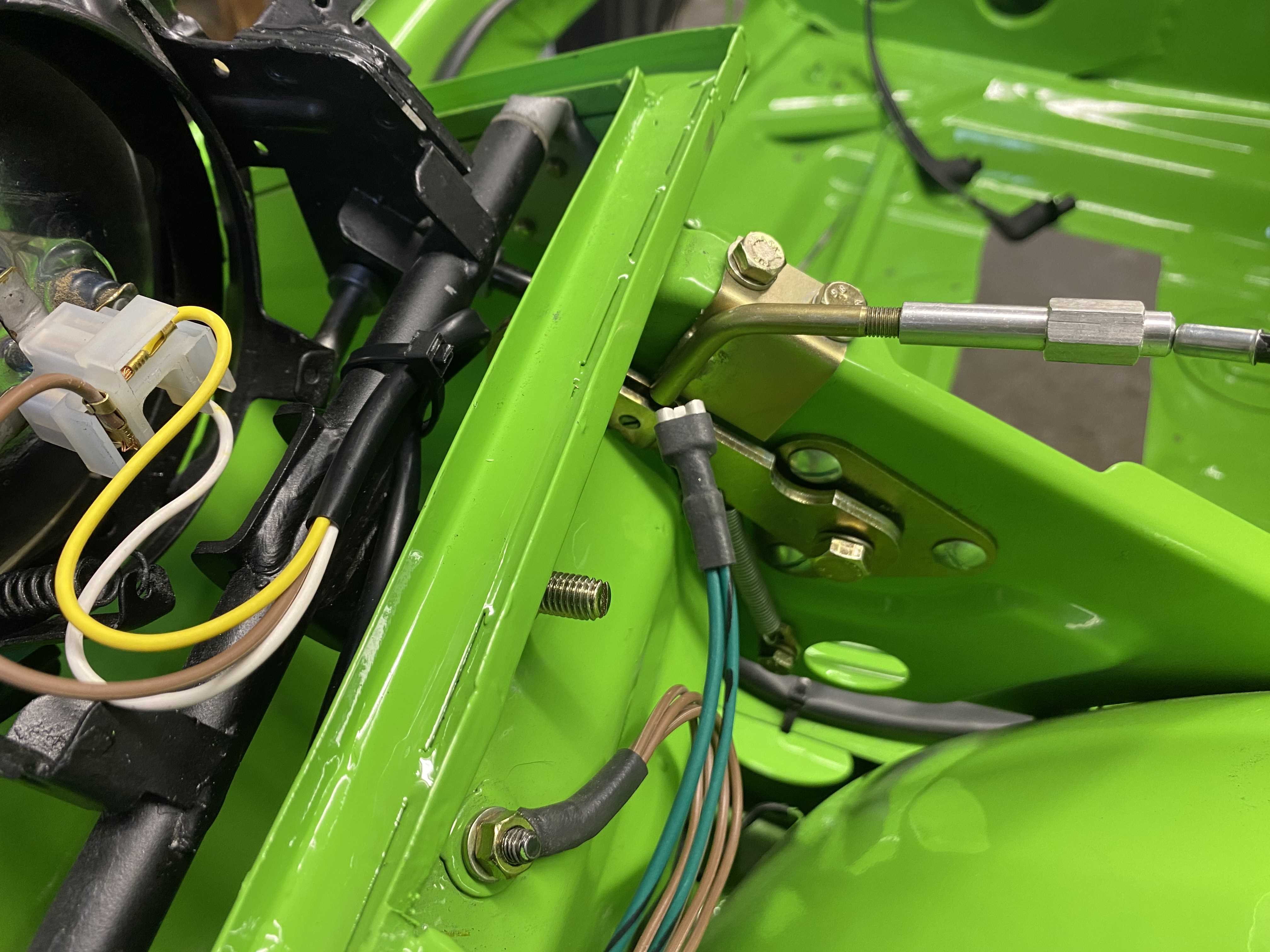 I installed the front headlights and then decided to fit the mechanical GT headlight kit to make sure I had all the pieces and understood how to make the system work. I had purchased a partial kit from a member of our board but it was missing all the wire cables, a couple of the cable barrel keepers and any assembly/installation instructions. The detailed photographs provided by Armando Serrano in his epic 914-6 GT posting on Pelican saved my butt and more than made up for the lack of instructions.