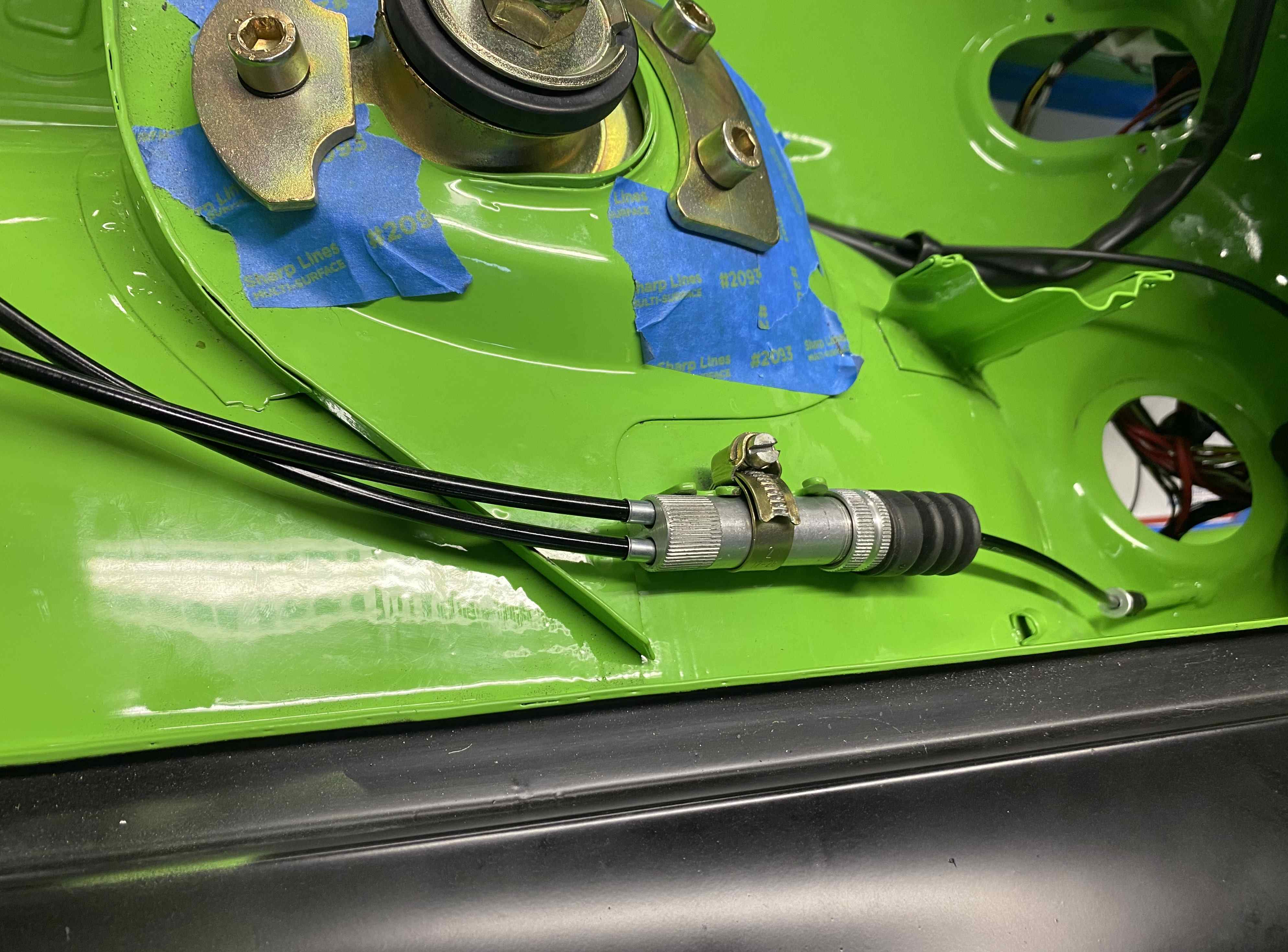 I used spare 911 hood release wire cables that I have in my stash of parts and was able to fabricate the missing cable barrel keepers for the cable splitter. It was a trial-and-error process with many assembly/test/disassembly cycles before I finally managed to get both headlights to lock and release. |