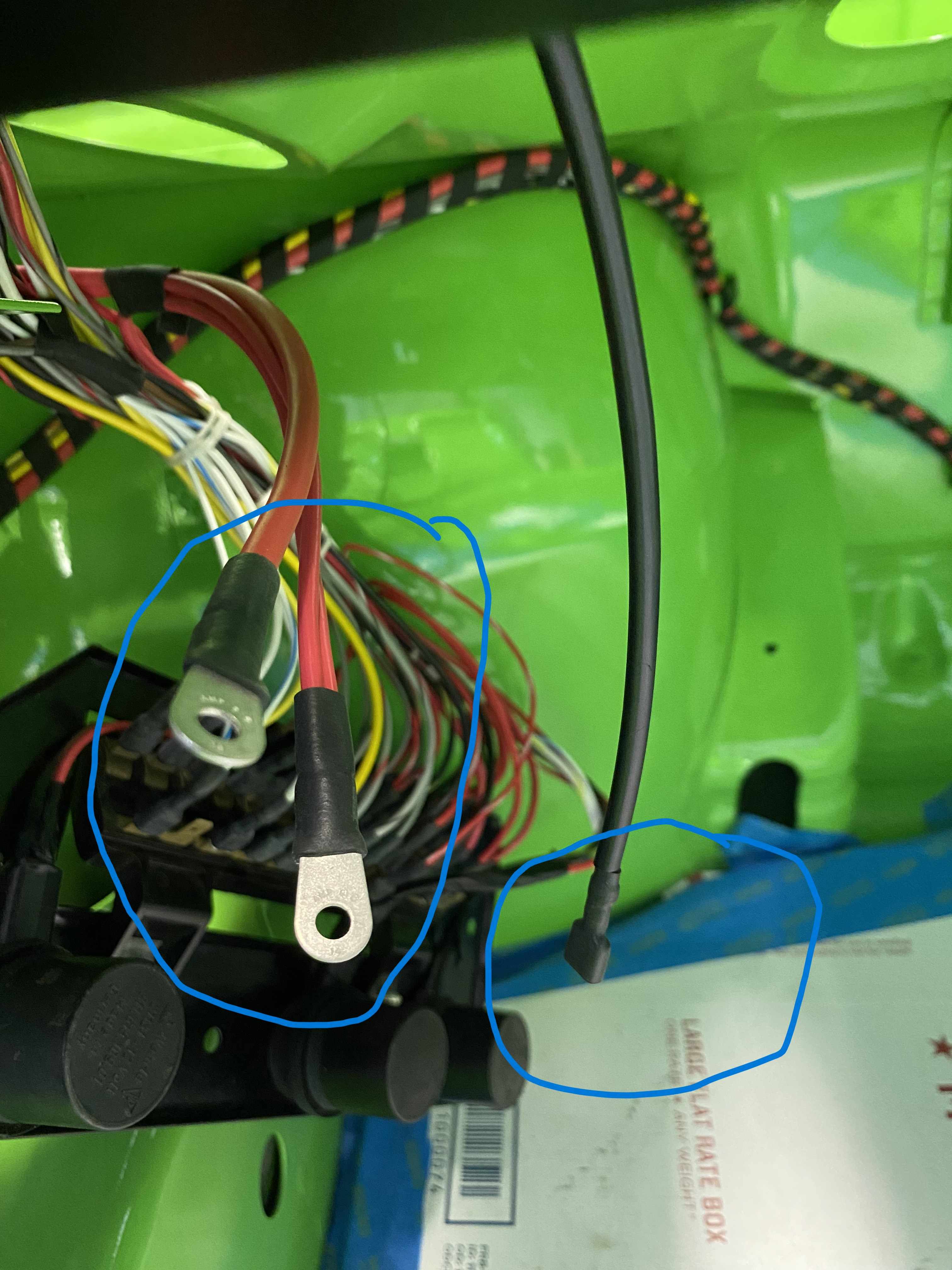 I found the insulator block in my stash and installed it. All good now with keyed power to the switches and gauges. I also realized that the black wire is for the door switches.