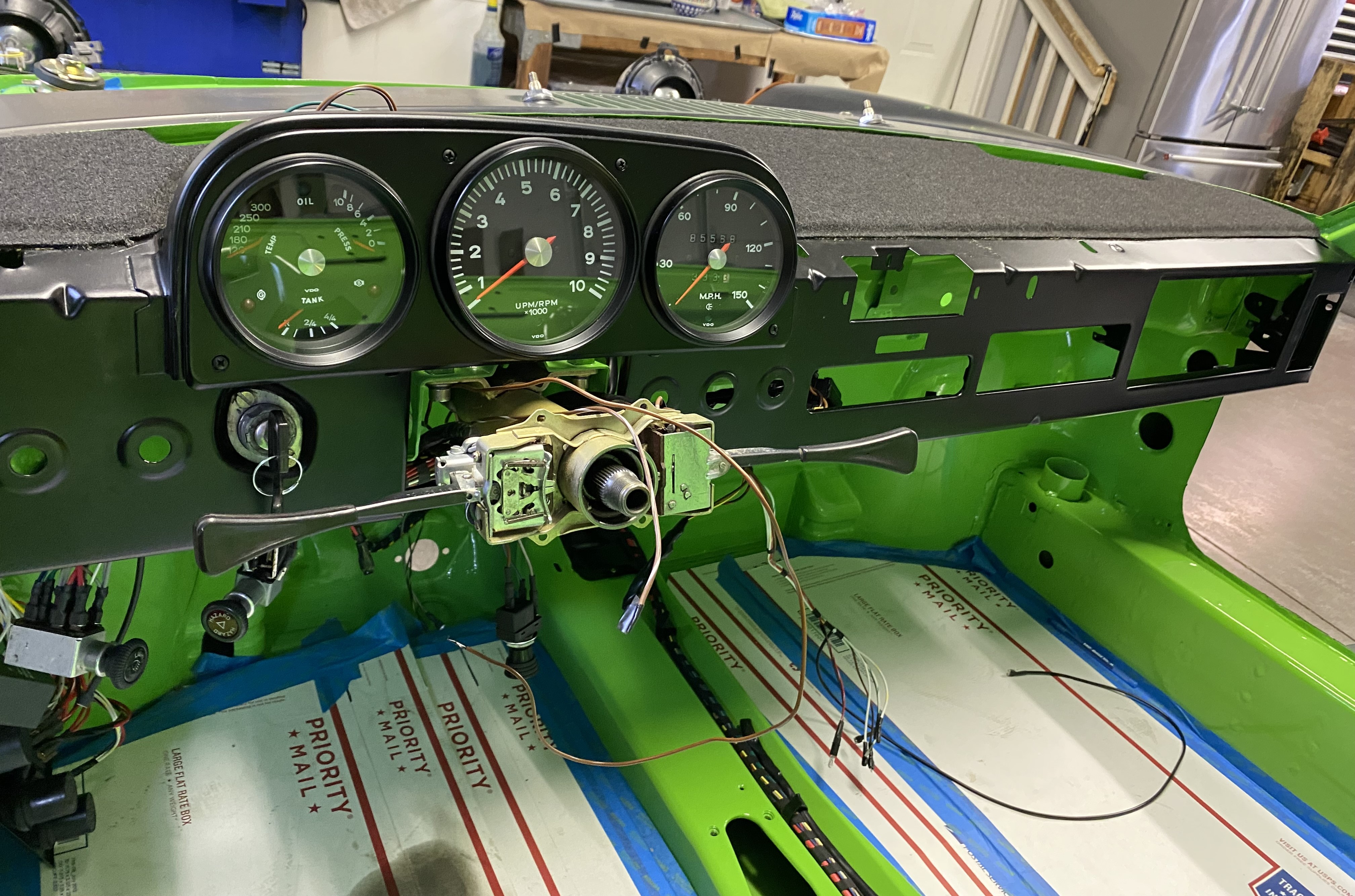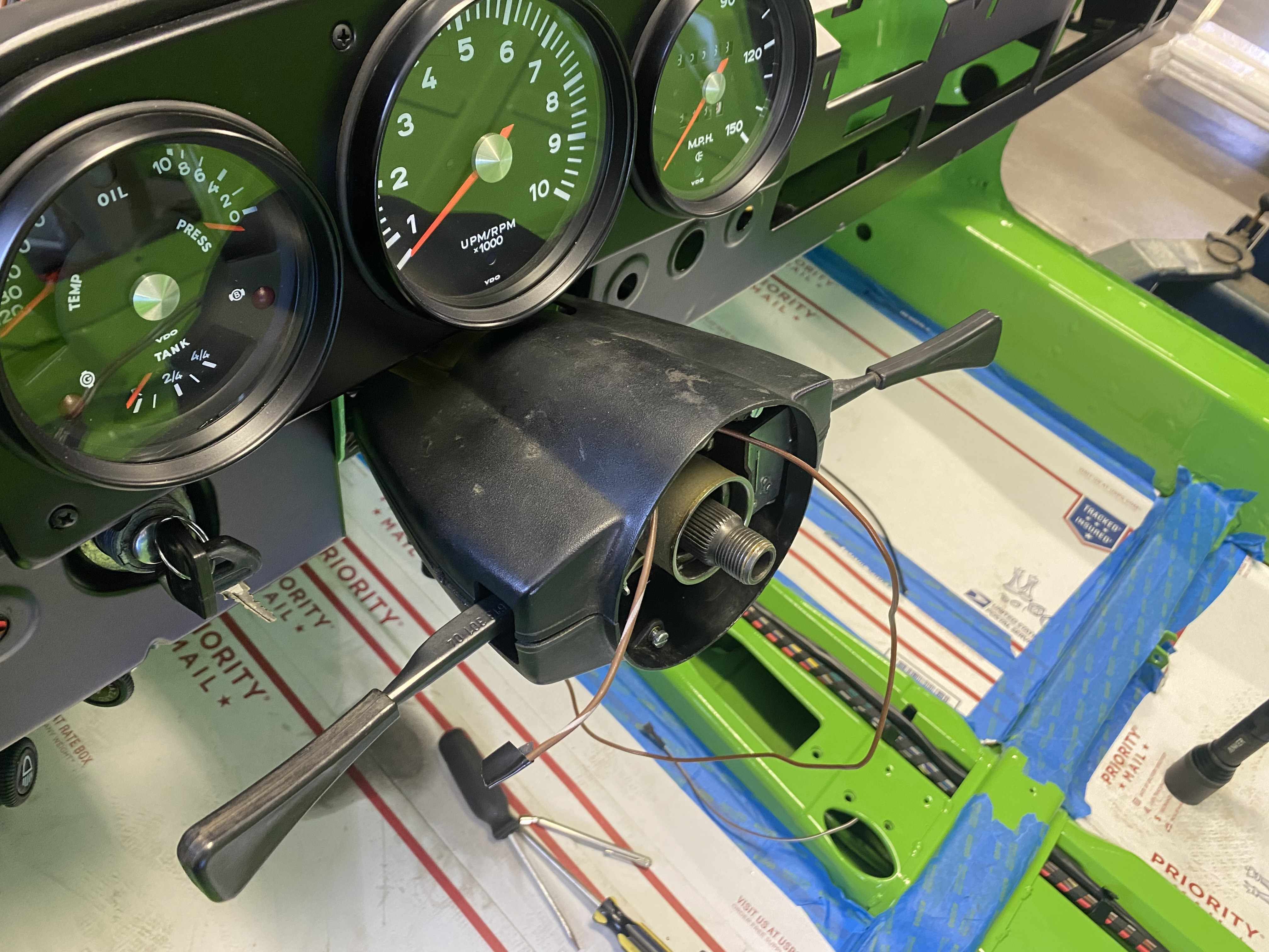 Tom, I missed why you swapped to a 911 steering and clamshell? Hi Lars Since this is -6 GT tribute project, I wanted the GT look and feel in the cockpit. LHS ignition switch, 911 style T/S and wiper switches all required a swap to the early 911 steering column and clamshell. |