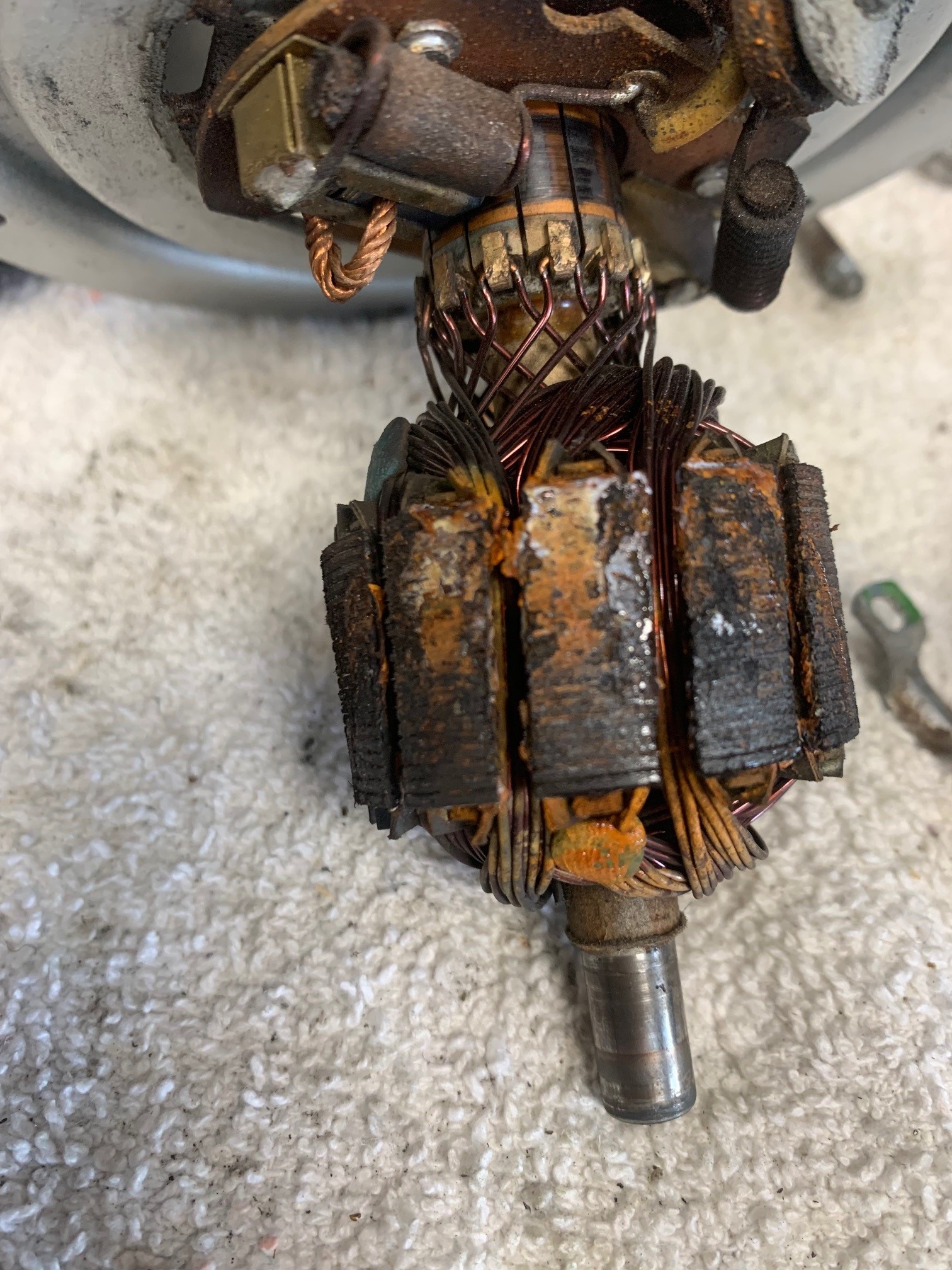 good careful work! Funny that we have at least 100 GOOD used late model heater blower fans on the shelf, and maybe two good early model ones and 70 bad ones that DO NEED rebuilding