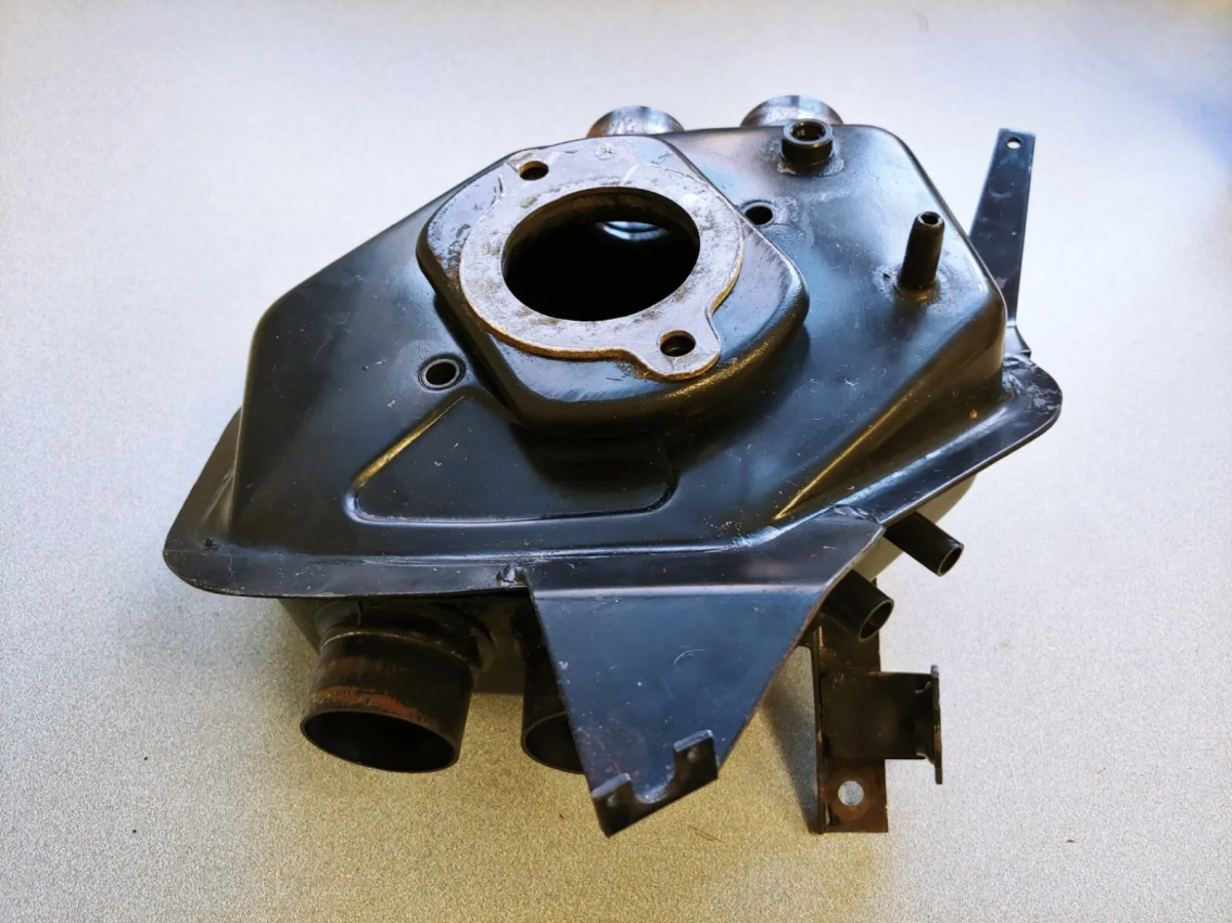 75-76 - Smaller side port (it appears to have a cap on it). Is this like yours? If so it’s been changed from the original 74 style at some point. All 2.0s are not the same in every way, there are several differences between the 2.0s in 73, 74, 75, 76 model years and this side port on the air plenum is one of them.