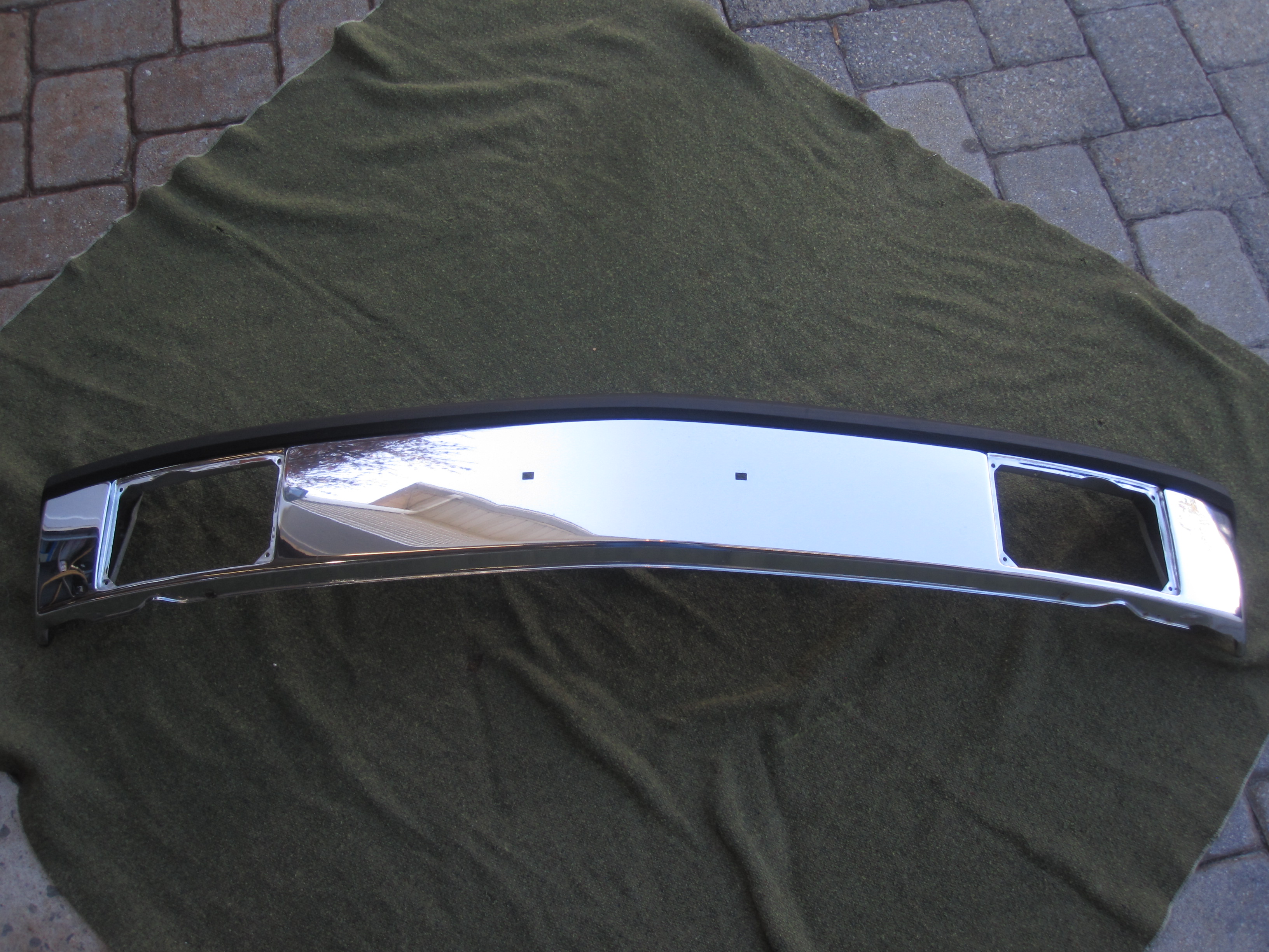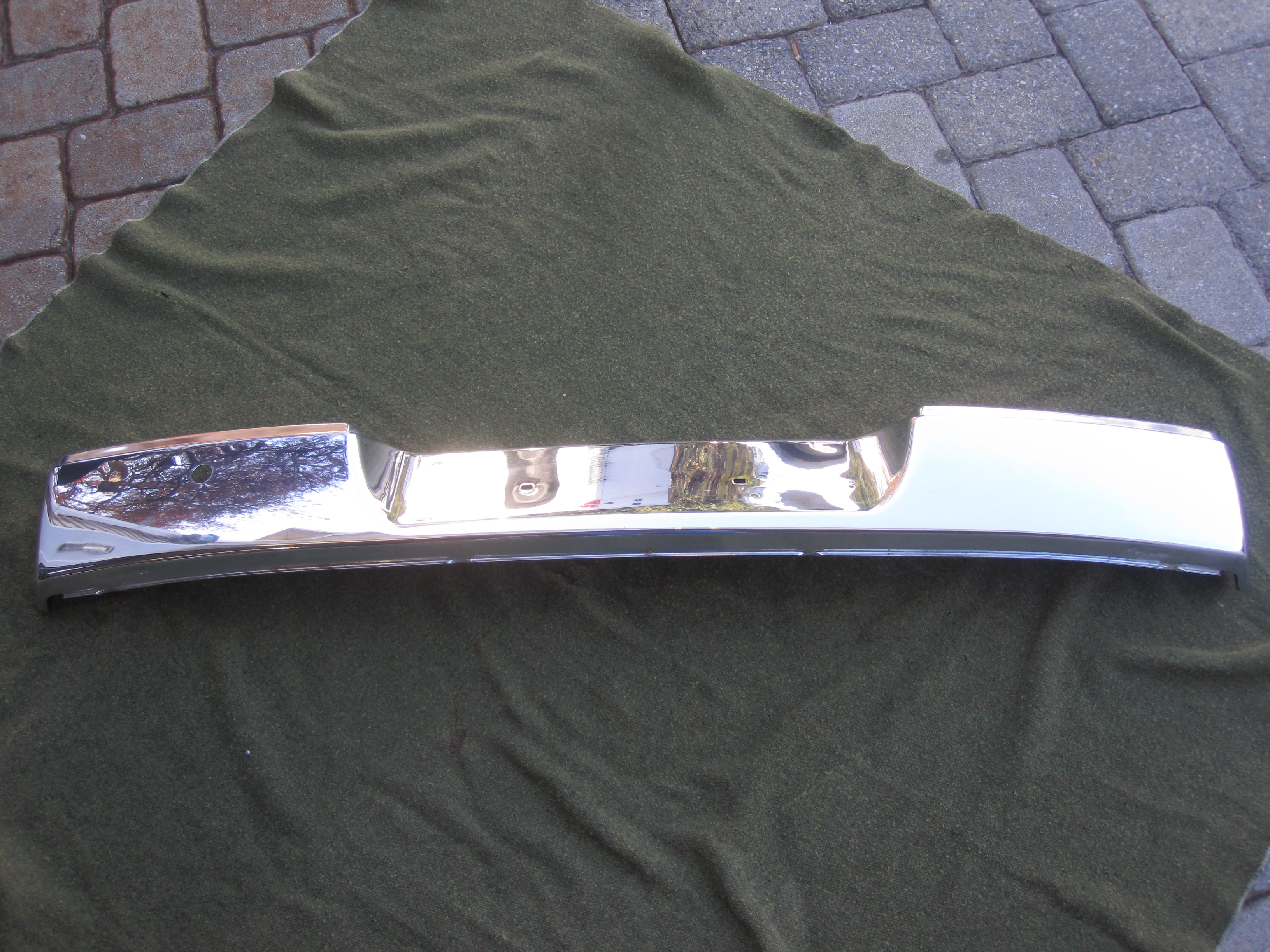 Chrome front and rear bumpers ... no txts These are very good driver quality bumpers. The front has a good top that has a single split. There is also a surface issue in the chrome near that split. The rear has light scratches and also a small dent to the right of the license plate surface. No black top trim. $900. plus shipping. Can provide additional pics to serious buyer Attached thumbnail(s) |