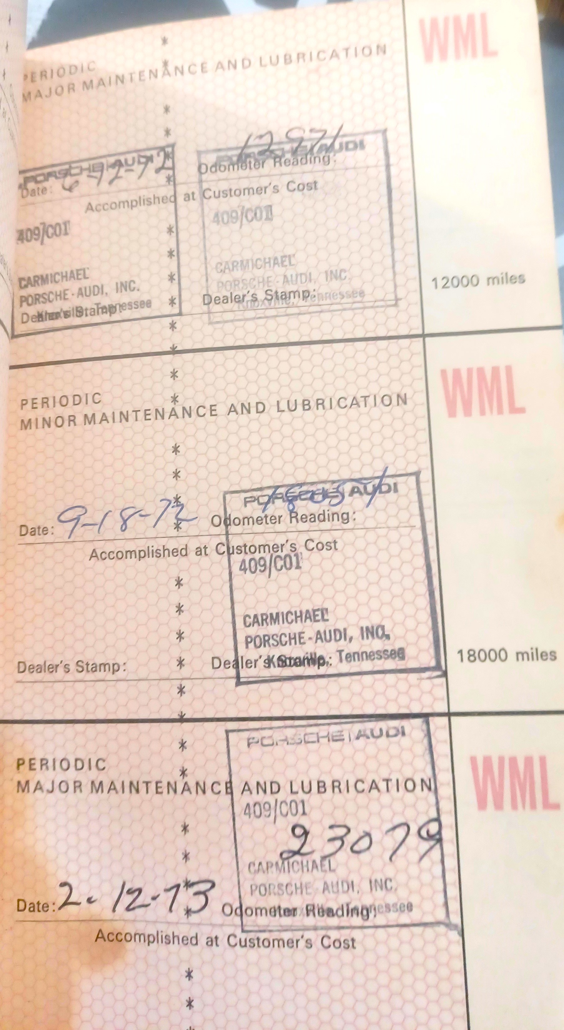 The record book appears to be for a 1971 car. Love to get photos of any dealer stamps in the book. So a mishmash of items, but useful. What is the printing date on the Emissions booklet? Don't have Zelle here, and am not travelling there either in this weather. Mail strike is on as well. Looks like XI/73 edition 74 Dealer stamps below. Dealer on stamp (Carmichael) is still in the same building in Knoxviile as a repair shop on the ground floor. The showroom upstairs was turned into a craft beer pub. I sold my 74 Phoenix Red pair to the son, AC, last year. |