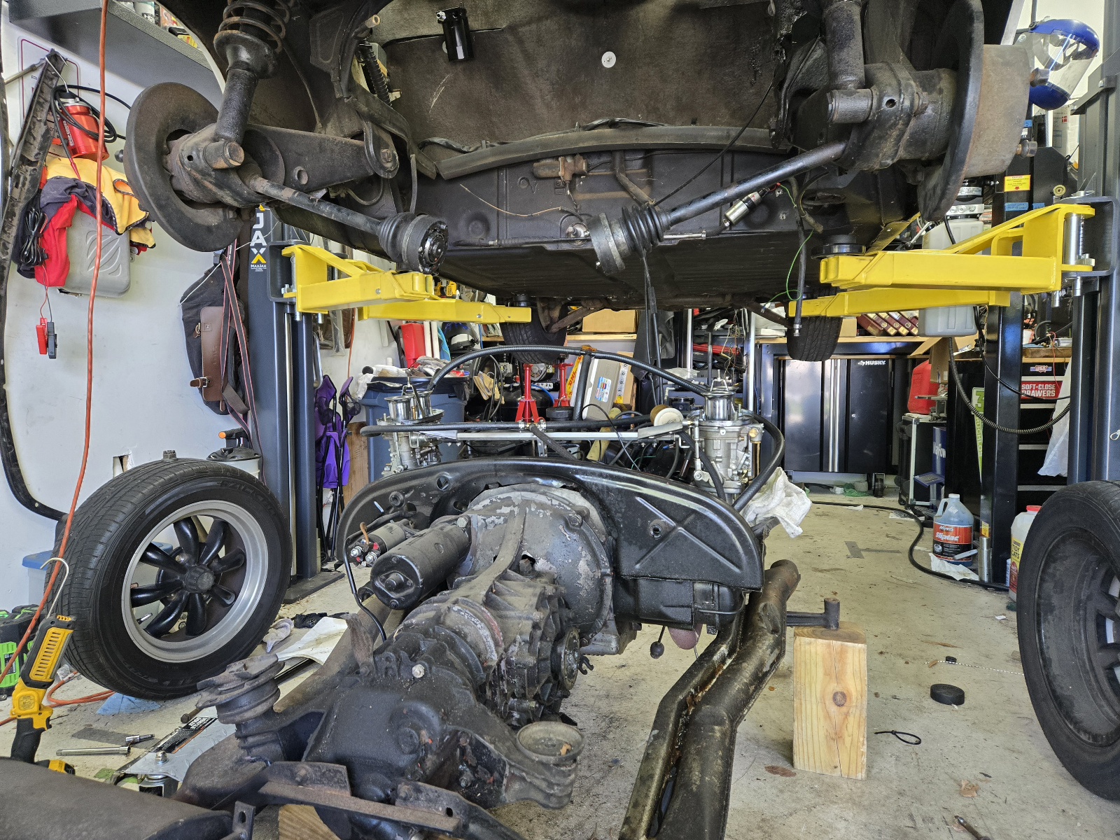Always like how quickly you can drop the entire drivetrain from a 914. My usual "forget" is the ground strap.