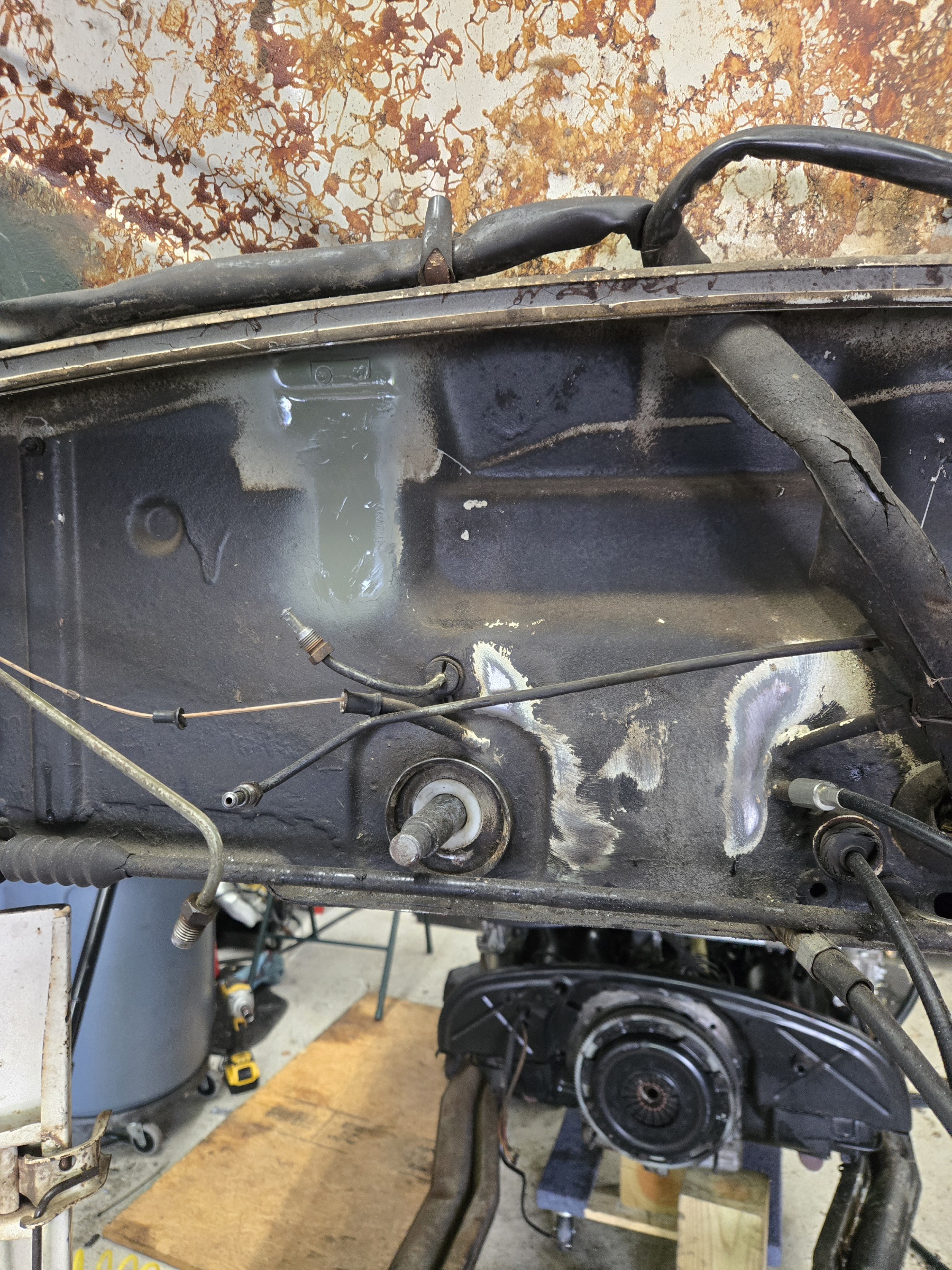 Pulled both rear hubs and bearings. New ones arrived from Mark. With the motor out I gained access to the bay. I already ordered the tangerine SS return line. Since the car was converted to carbs no need to replace both. Going to CIS it will be required. I removed the relay board and mount, the blower mount and the brake proportioning valve and mount. I will not be moving the valve like I did in my other conversion. I'm going to use a "T" and make it simple (flamers welcome). I removed the engine lid as I need to repair the passenger mount. Someone did a fix before and it was poor. A new one from restoration will do the trick. I did this on my other conversion as well. |