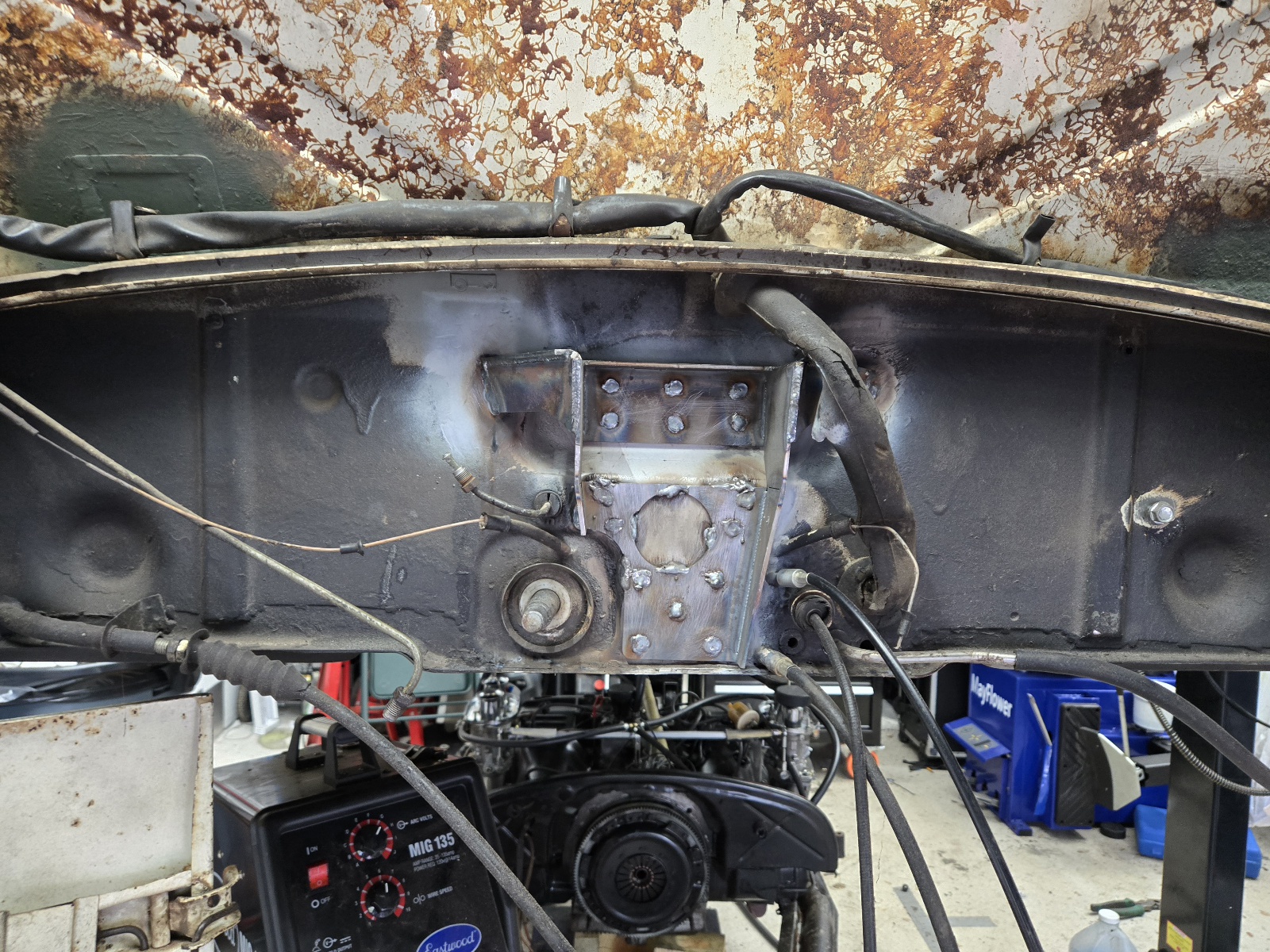 Got 1 of the 2 major hurdles completed - welding in the mount. Only other thing I need to weld is the engine bracket and should go just as well as this did. The other hurdle is cutting holes for the tank. Seems simple enough, but making sure you get it lined up and try not to tear up your $30 hole saw bit. Last time I did this I chose the wrong size so I had a goof hole. It all worked out but it was still an oof. I almost screwed up welding the mount bracket. I had my wire speed set too low so when I went to fill the plugs it wasn't working correctly. Also I think I had the heat set too high. Anyway, I got it dialed in and things went as well as could be expected. I'm a "melti-glob" welder at best. The plug hole fill makes my novice skills seem somewhat passable, one reason why I like using this version of the mount. |