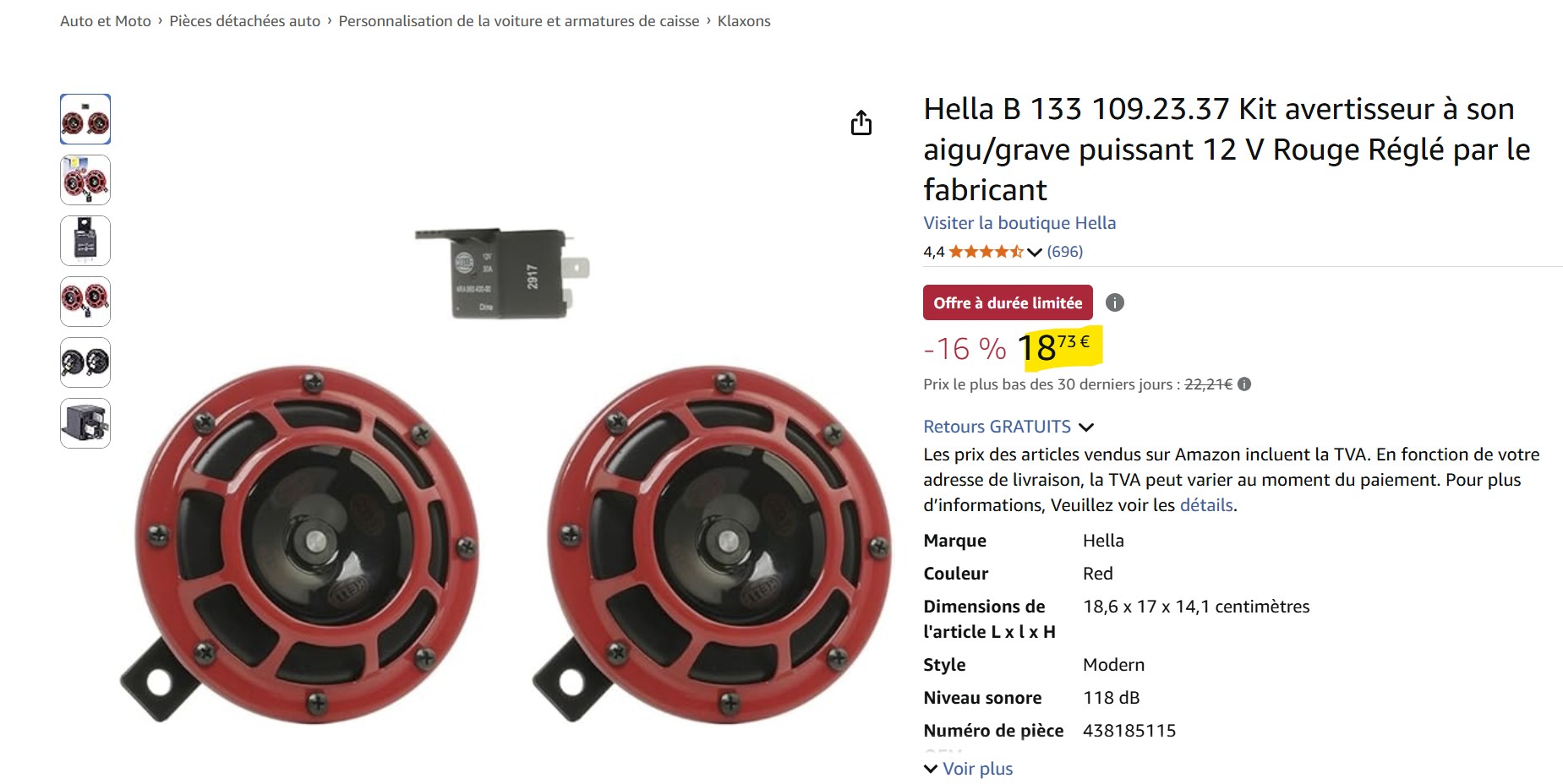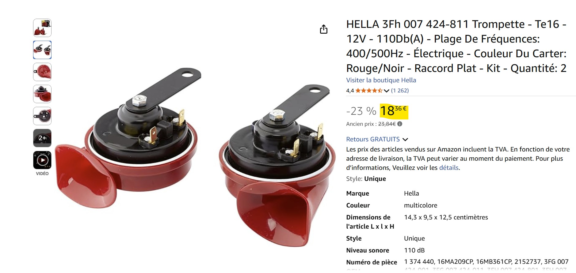 https://www.amazon.de/HELLA-Frequenzbereich...urce=1&th=1 Various sites seem to indicate they will (physically) fit… They pull 72W each! So 12A total. The horn fuse is 16A, but it also runs the two 55W accessory driving lights in the bumper, which in my Euro spec car go on with the high beams. So imagine driving with the high beams on and having to honk… Only momentary, but that’s like a 21-22A draw thru that fuse. I guess in order to avoid this possibility, I am going to need an additional fuse and relay… Hmmm. |