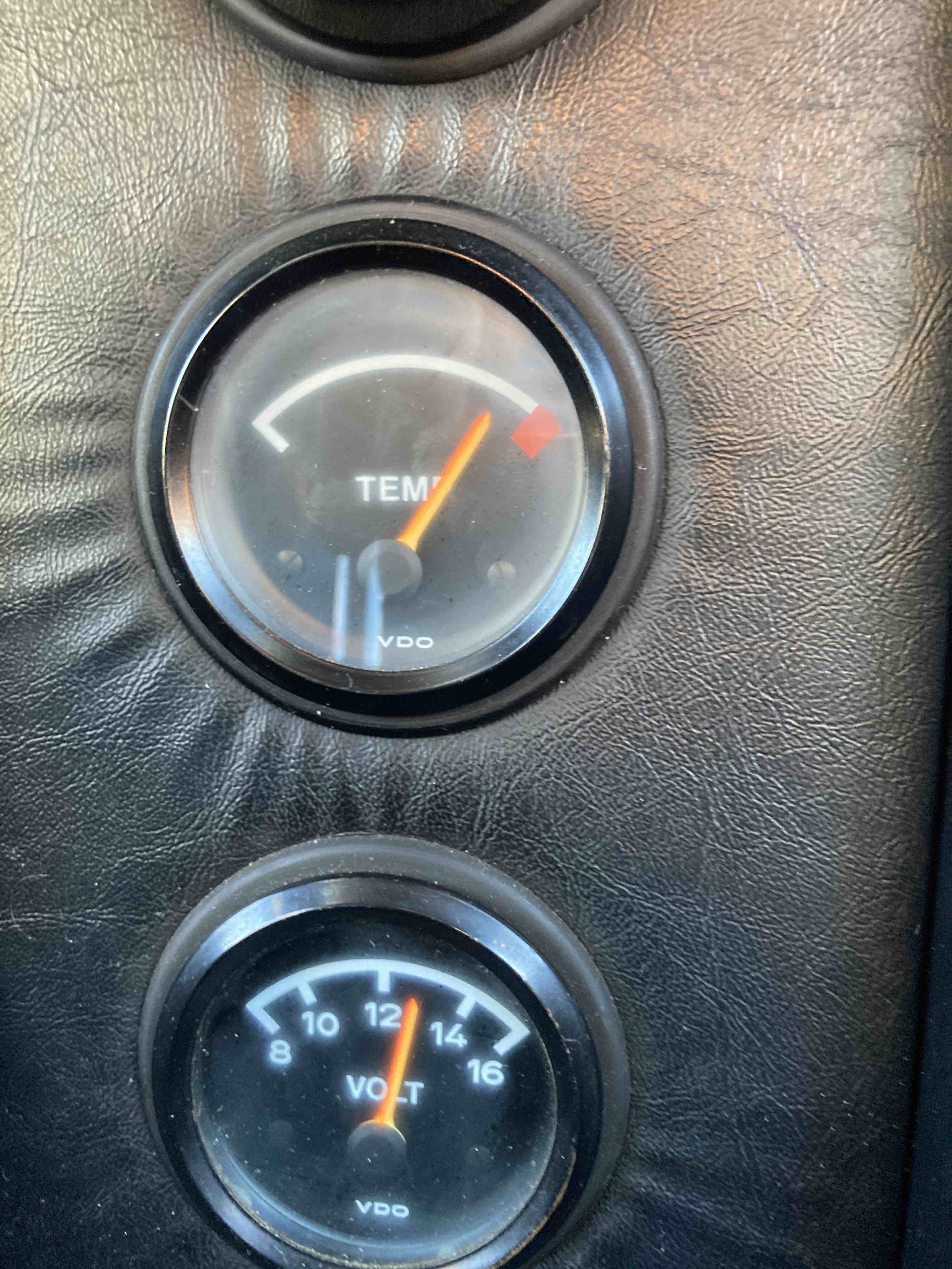 I need to address what I think might be a high oil temp problem . After driving around town for 30 minutes the photo shows my oil temperature oil gauge and a actual thermometer reading using a turkey fryer thermometer. The needle on my console gauge gets very close to the red high mark and sometimes just about to cross into the red . At this point the turkey thermometer reads ~216 F degrees . My Dakota Digital head cylinder temperature reads 111C (231F) . It is almost 80F here today in sunny So Cal. but this seems too high for me . What would be a normal reading for the oil temp gauge? This is a newly rebuilt motor (less than 300 miles on it). I did not replace the oil cooler (its original) but it was flushed and was clear. The baffles are held open by spring tension since the thermostat is not working but I checked they were open by removing the coil and checking through the bolt hole. This should be ok until I get a chance to replace it . If I pass my smog check tomorrow or Thursday I am hesitant to take the car on a long canyon drive , so not sure if I can attend the toy drive this Saturday. Any thoughts ? |