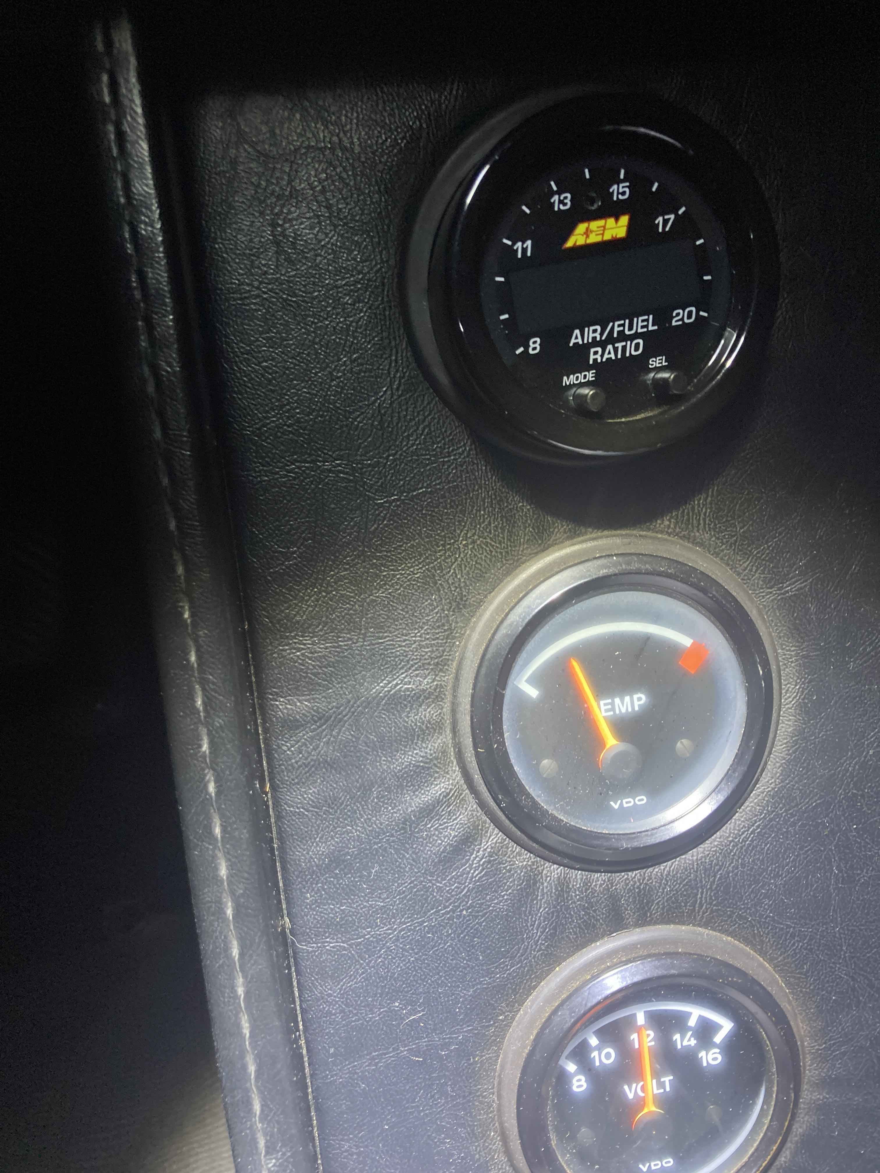The edge of the red zone is supposed to be about 300F. You say you’re running 216F so there is a disconnect somewhere if you’re getting to the red zone in 30 minutes of street driving. Get your smog test but you should get this figured out before extended driving. See top right graphic for approx temperatures with 200c sender. ![]() Does gauge work properly (ie all the way to the left when cold)? Have you verified wiring? The wire from the sender should not have any DC voltage on it. Should be high resistance when cold and rapidly decreasing resistance as oil warms up. What size oil pump are you running? Do you know your oil pressure? Unfortunately I don't know what size oil pump was installed ,but I do know a new one was installed . I don't have an oil pressure gauge but I did recently purchase one but need to get the dual sender before I can install it . Hers a photo of the gauge without power on it and one with power (the car has been off and in the garage for almost two hours now . |