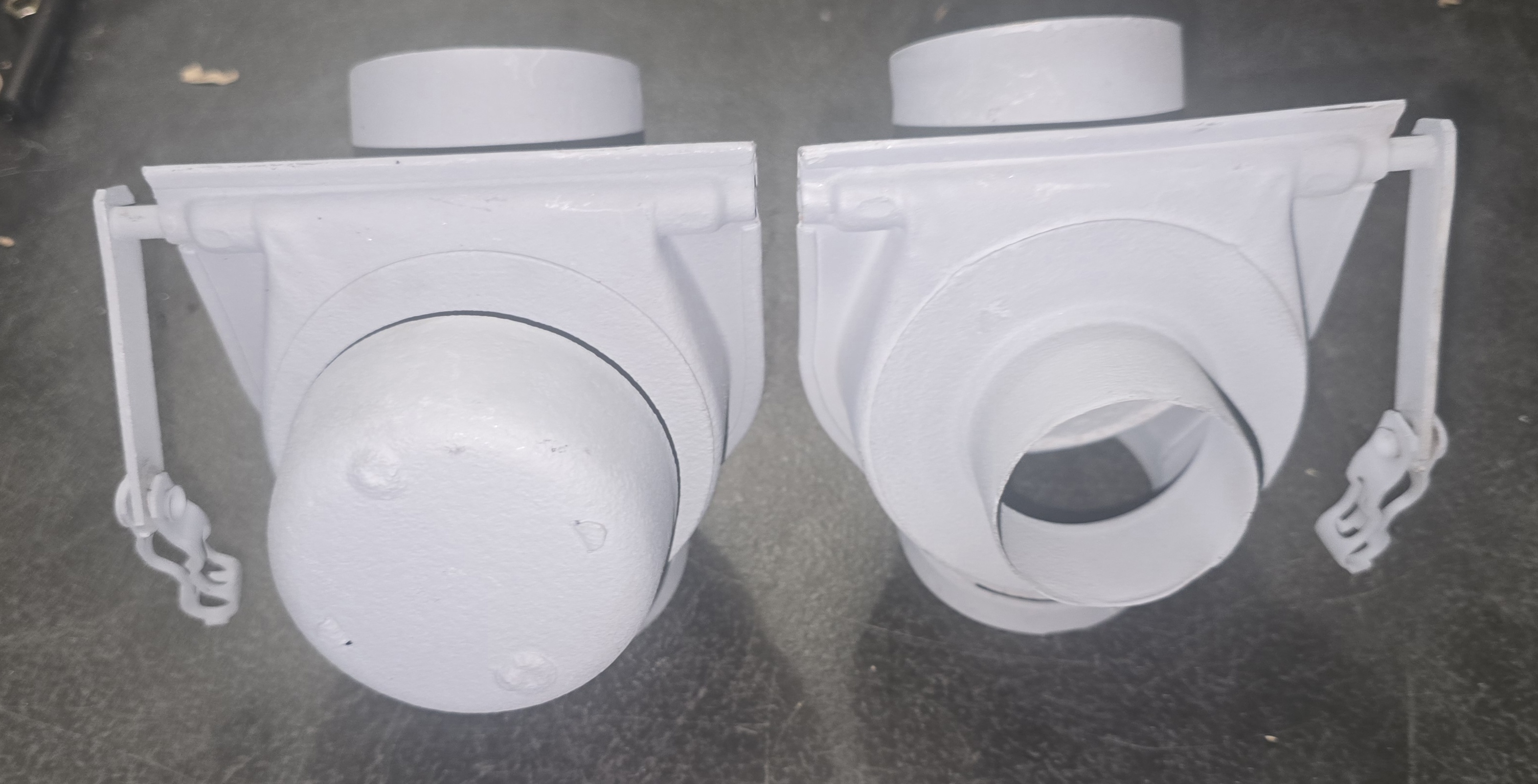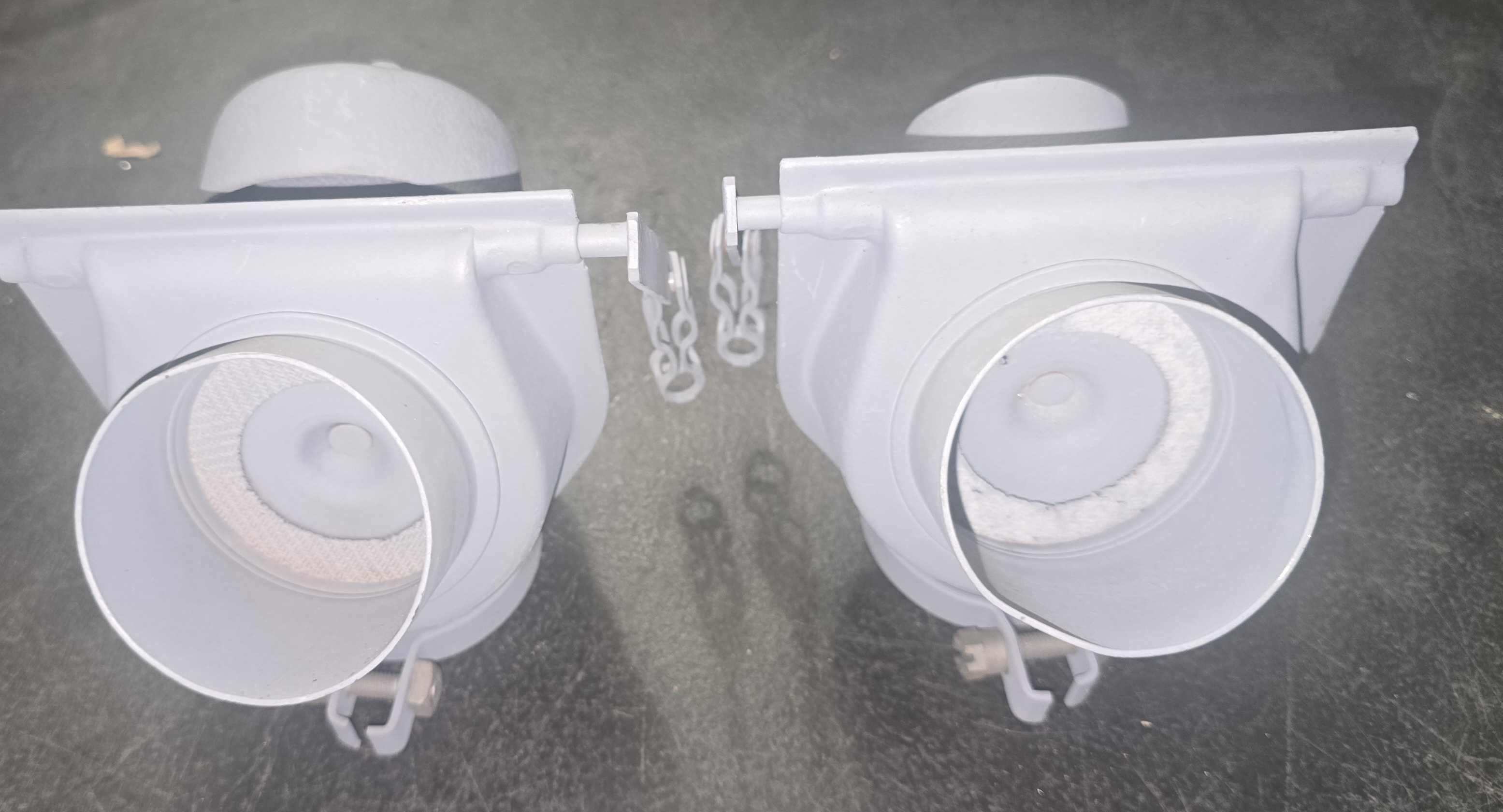 This is a pair of flapper valves i picked up. One ha the top hat removed and the attachment tabs are gone.