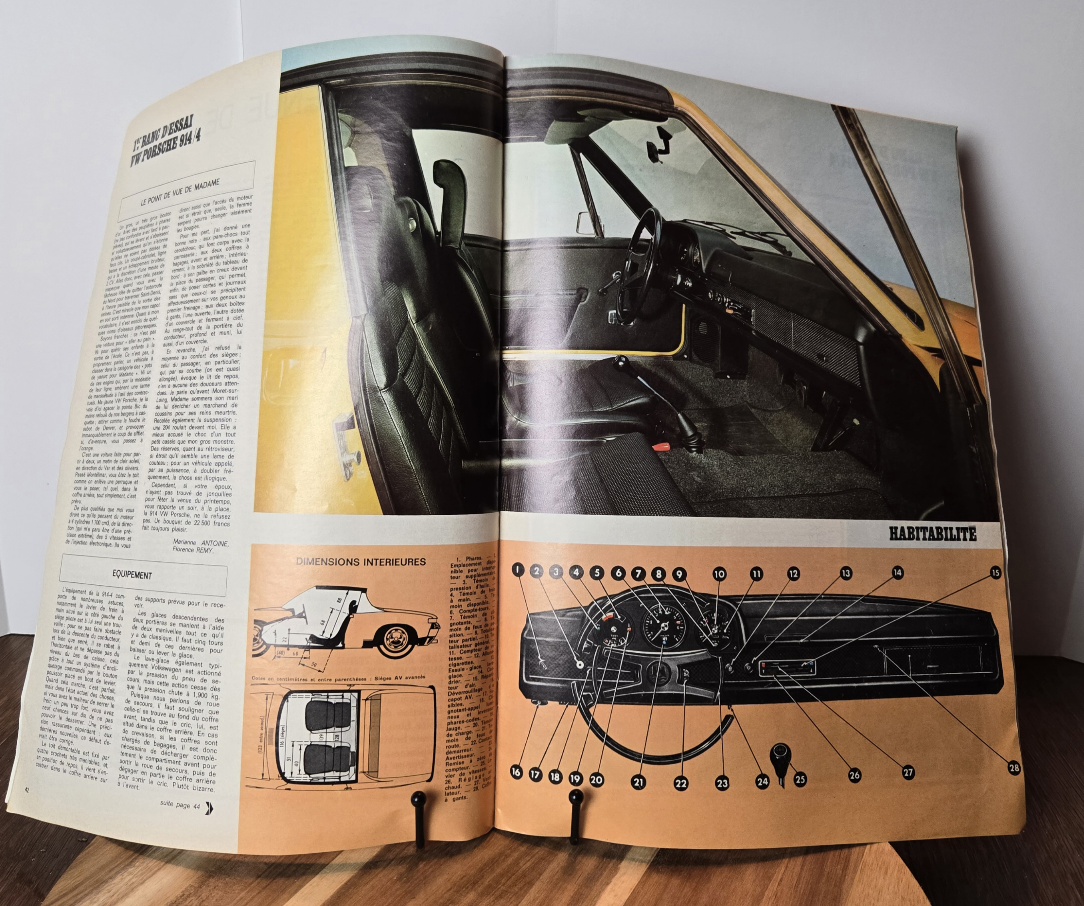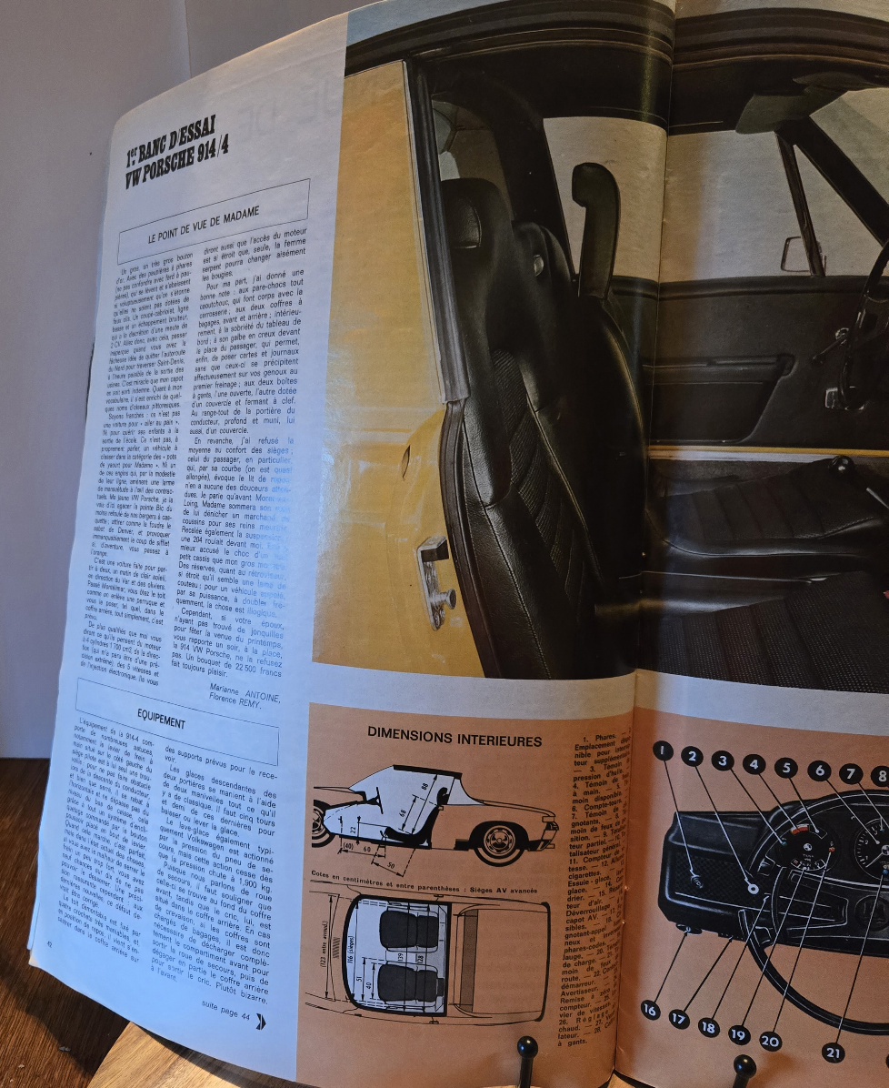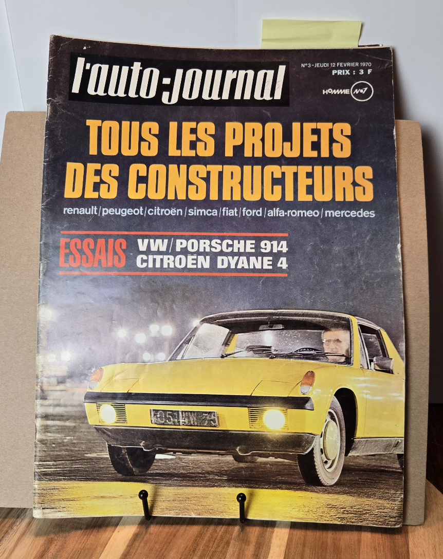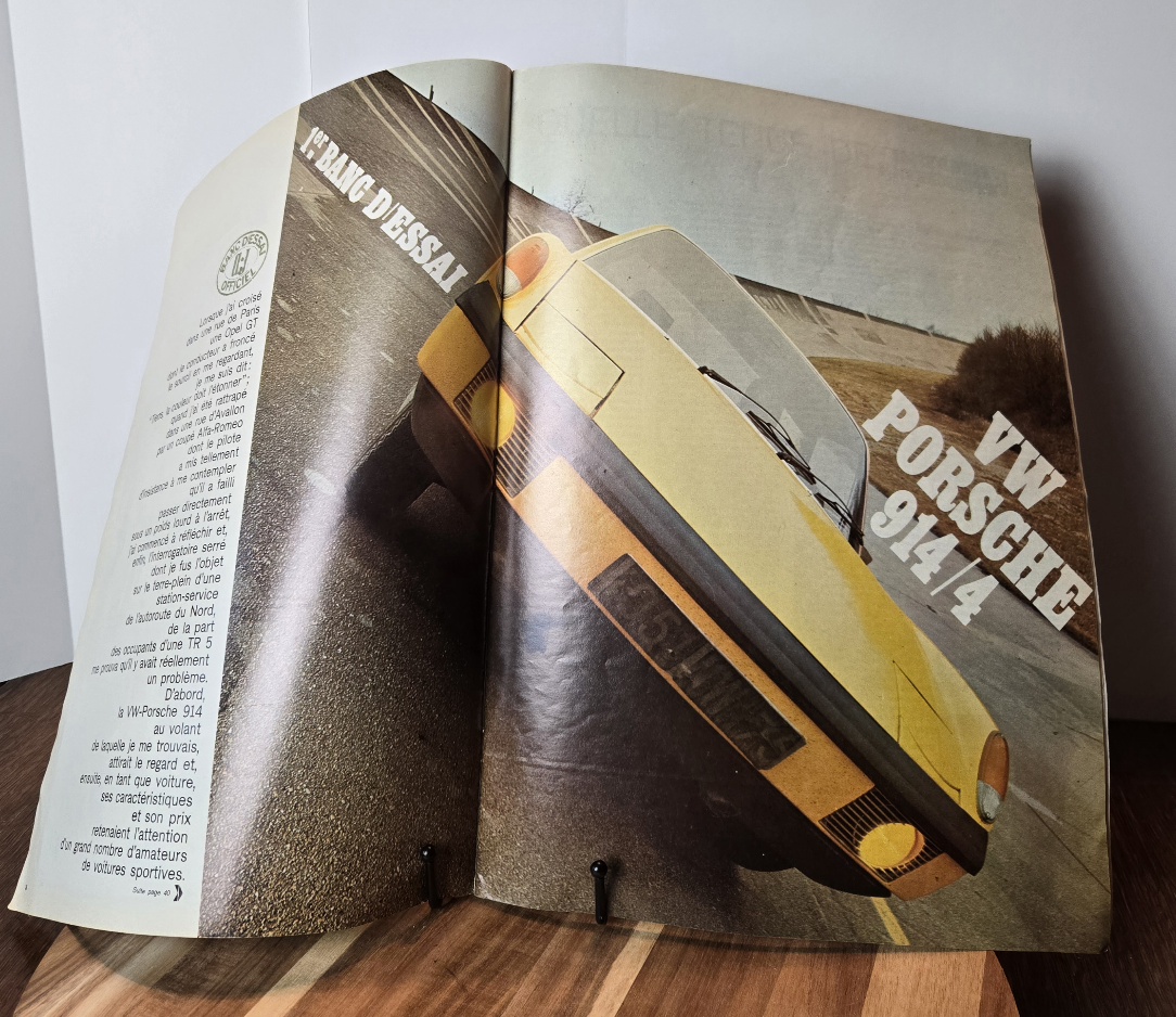FS February 1970 French magazine ratuo-journal featuring a 9 page spread on the "New" 1970 Porsche 914. Great pictures, details and more about the 914. This has been in my collection since the late 90s. This is an over sized magazine that is 14 1/2 × 10 1/2.