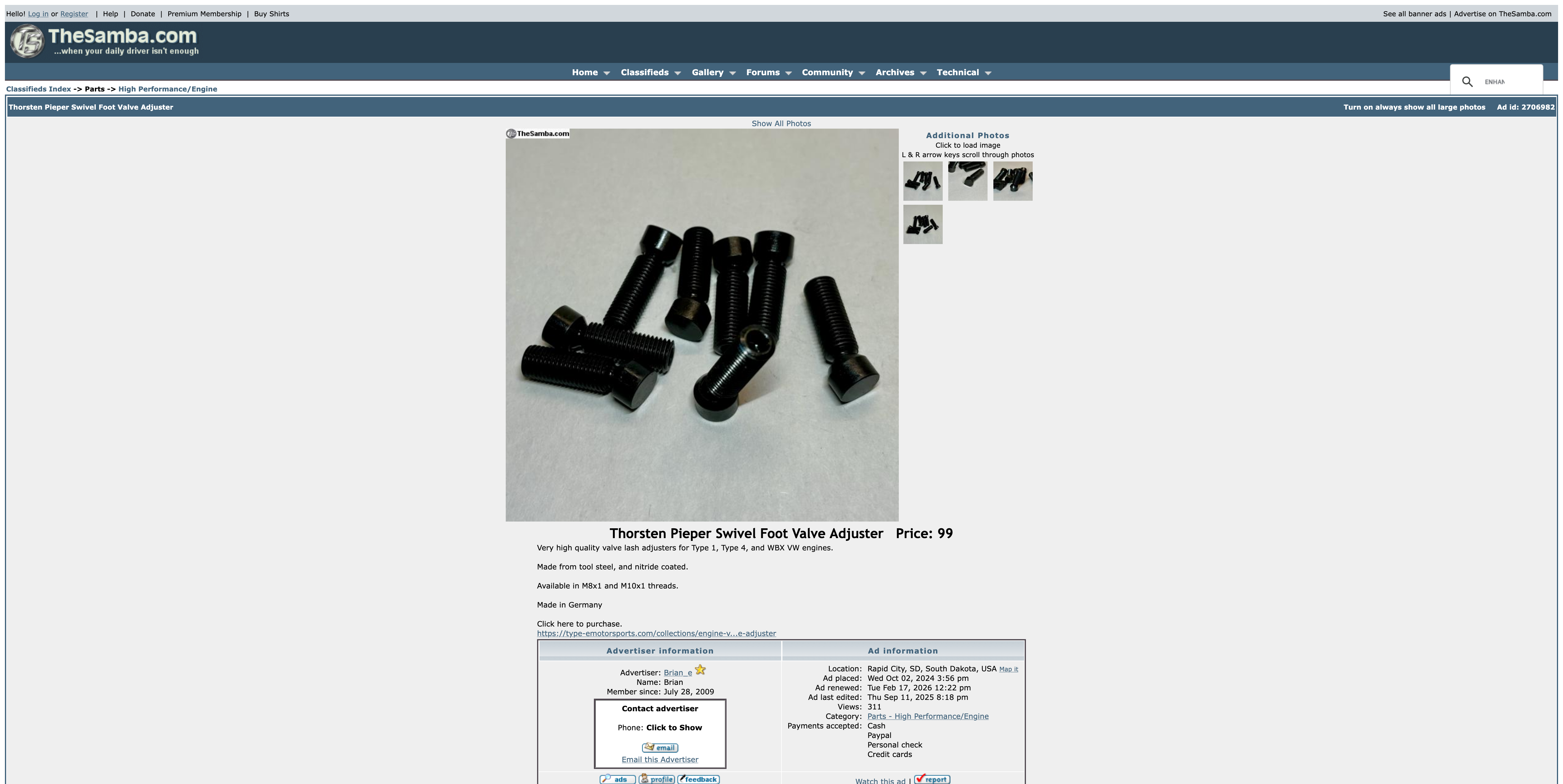 Assuming the OEM parts are NLA, I read mixed reviews on the Kolb (Kolbenschmidt) brand reproductions - and since I plan to switch over to swivel-feet adjusters later this year anyway, I thought I would give the Kolb parts a try (my adjusters are in bad shape). FCP Euro stated they were in stock, but after placing the order I received an email stating that their supplier only has one in stock - so I canceled that order. Other vendors must use the same supplier because when I checked inventory of the Kolb part elsewhere they also stated only one available. I just noticed that AA lists the Kolb part. If I don't get any leads on OEM parts from folks here, I'll try calling AA tomorrow to see if they actually have eight of the Kolb parts on-hand. Thanks for any leads, Frank [Edit] I forgot to mention that I'm going to call a VW dealer tomorrow to see if they possibly have stock |