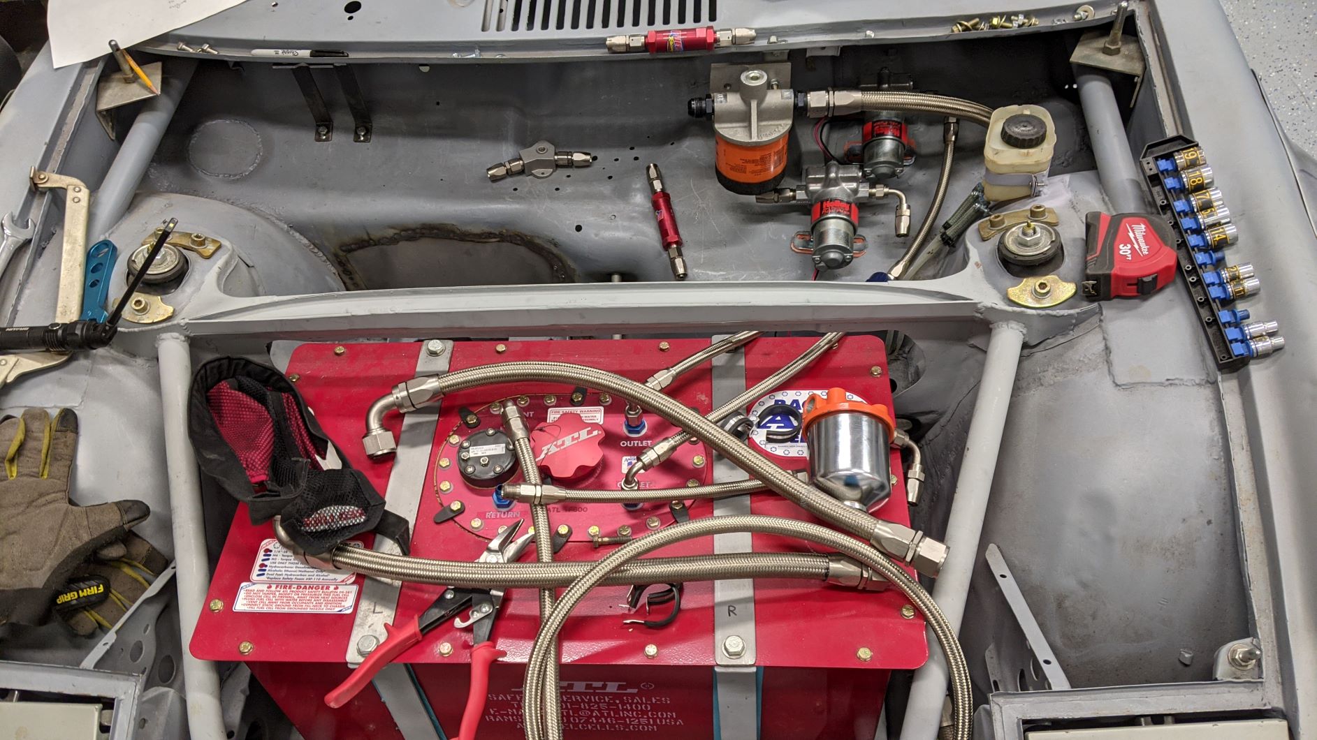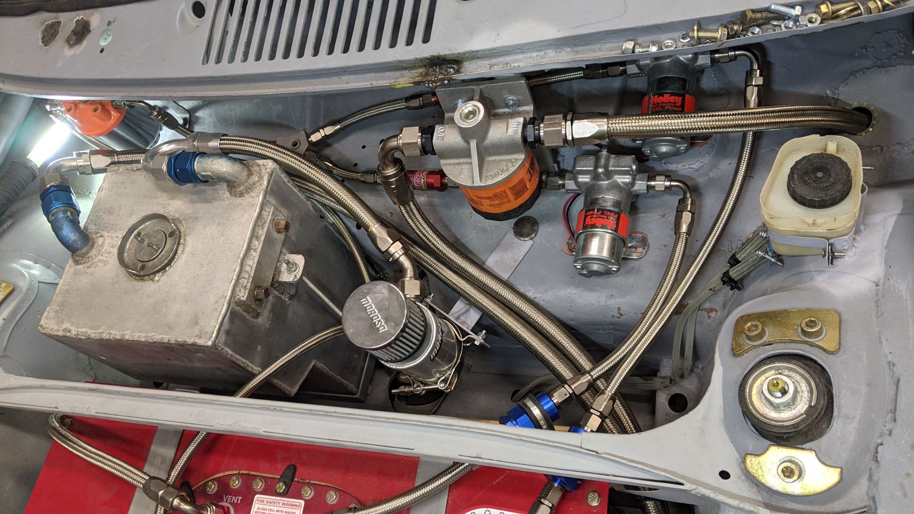 I have reached a major milestone: the fuel and oil lines in the front of the car are all