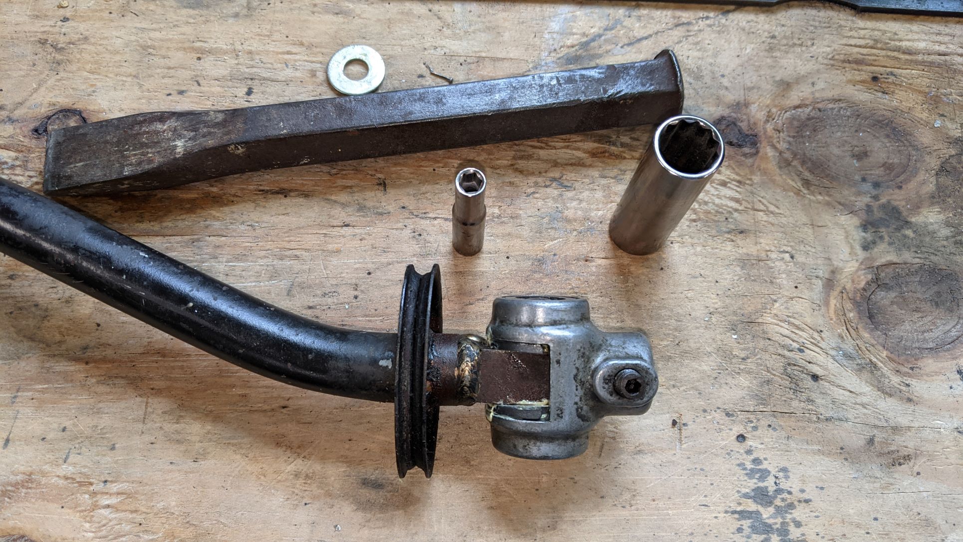 I also replaced the bushings in the shift rod using the two different size sockets method and a shop press. This makes it pretty easy, I have no idea how I did this on my other 914 back when I did not have a press. The cold chisel is for refreshing the stake marks in the center of the roll pin so that it does not slide out. I am sure it will rust itself in there soon enough and be a pain to get out again next time. Pelican sells brass inserts, which look sweet but I did not see until after I replaced these with the plastic ones. The old bushings basically crumbled into dust in my hands. John |
