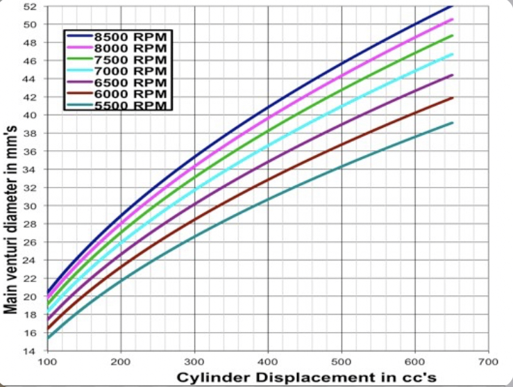Here’s the standard venturi selection chart for MAX horsepower. If you set up to this chart you’ll end up with