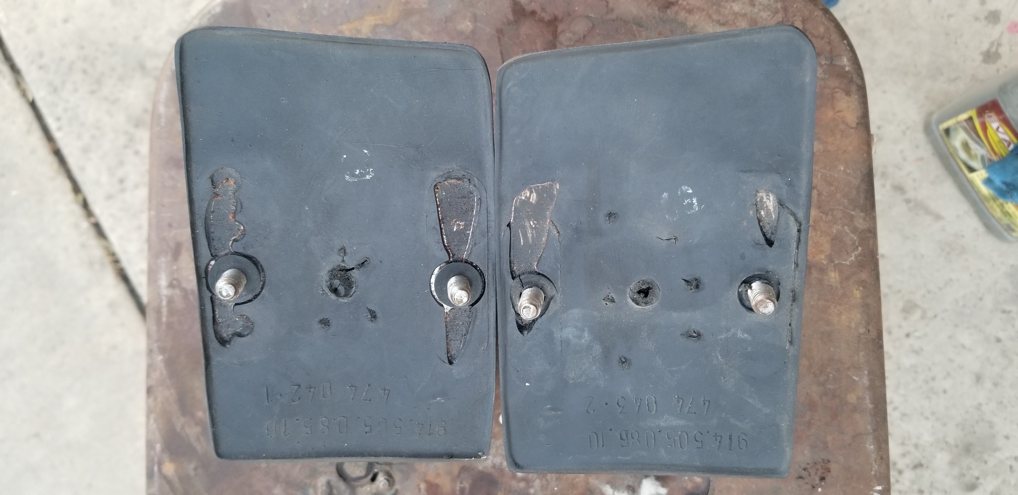 @9144me2enjoy What is the white material on the back sides? I have some new ones and none of them have that. That area usually shows the metal and it is un protected and rust. I am thinking Porsche may have done that on some of them. The parts look good, but I have an NOS set (front and back) in the original boxes and there is no extra protectant. |