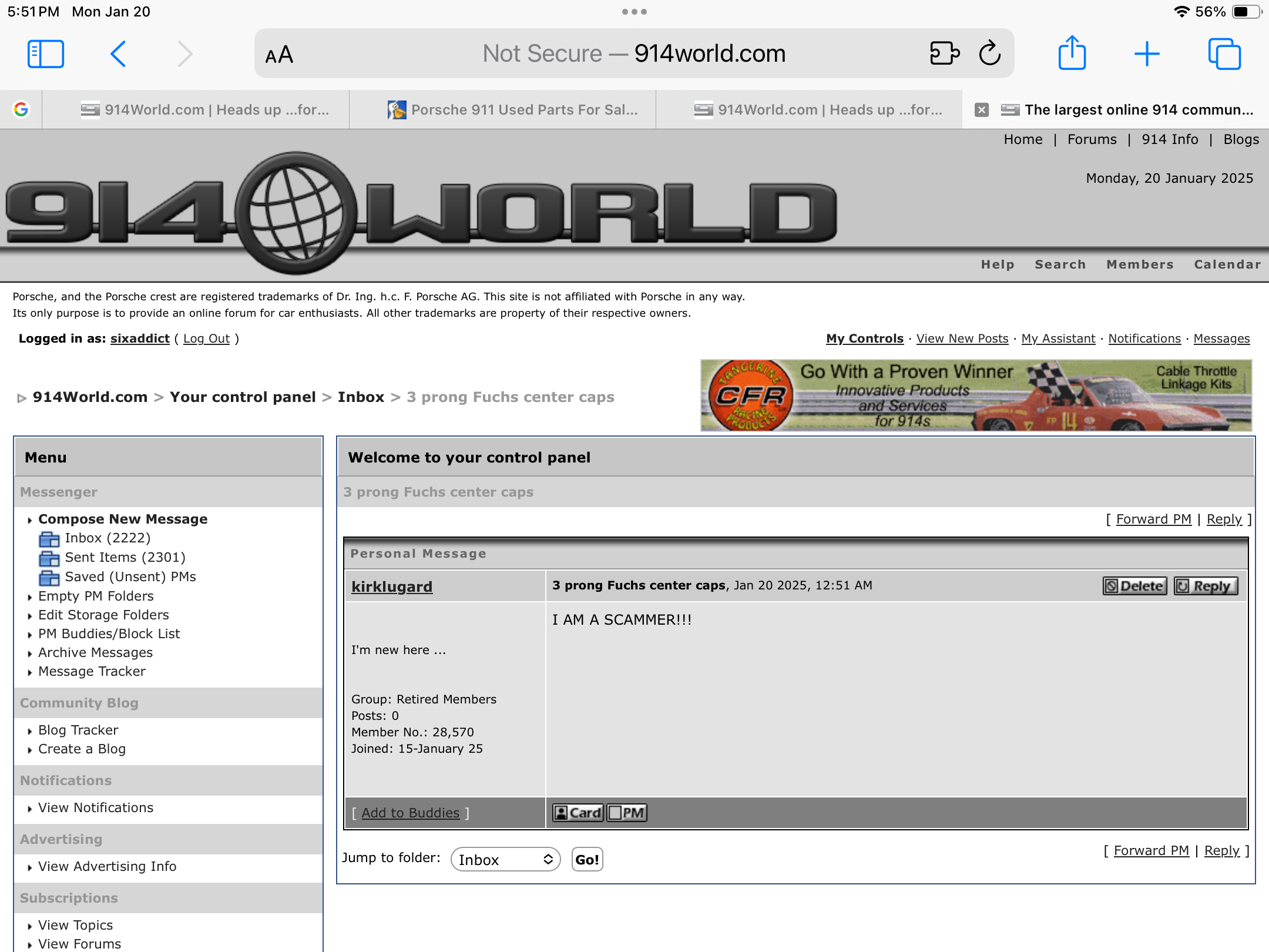 I got a message from that Kirk about a WTB I posted. wanted me to email another guy. I never buy from anyone with zero posts and no track record. And impersonating a philosopher. Scam is one thing but… |