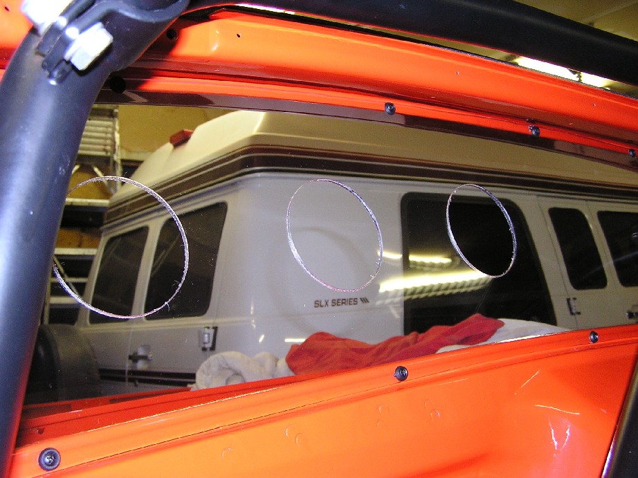 I can't really tell you if there is a reduction in lift. I wouldn't doubt it, but its just not one of those things I can absolutely confirm that I'm feeling. The reason we did this was to reduce drag. most of the race cars around here do. if fact most of the GT type car either run no windshield and no rear window, or else a slopped windshiedl and only half of a rear window here is our rear window. we figure all the air coming in the side windows needs to go somewhere or else the cockpit is a huge sail: Attached thumbnail(s)