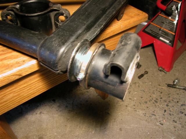 Blair and I worked on installing the HE's and Bursch after I cleaned them, the rear axles are hooked up the the tranny, put back together the right rear brakes after test fitting the vented discs, and assembled the front left strut but got tired. Shoot, working with only one arm is hard and tiring! There went four hours! Attached thumbnail(s)