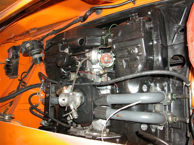 Brand new trigger points too! I dug out the 73-74 Black door panels and also bought a set of chrome window crank handles so those will go in as soon as I get time. What I need to do to finish: assemble right side rotor bleed brakes install rack spacer kit hook up drivers side S duct install new speedo cable hook up clutch cable add oil add tranny oil hook up shifter linkage adjust venting clearance install battery install door panels install speedo install tires test run to oil the engine without plugs install plugs and run it to break in cam (outside)