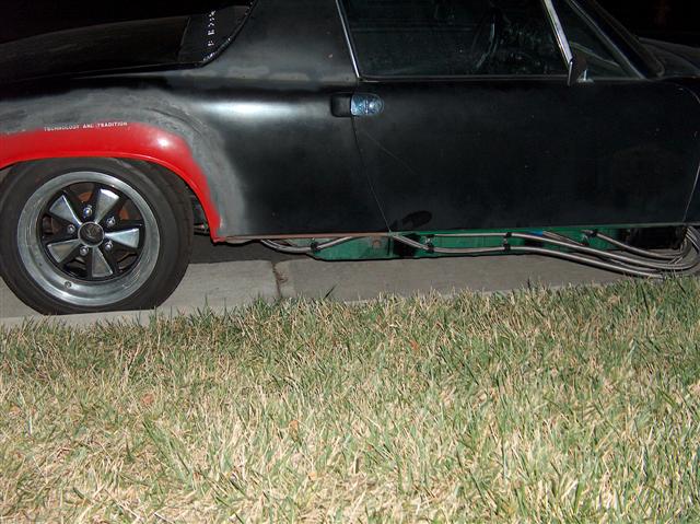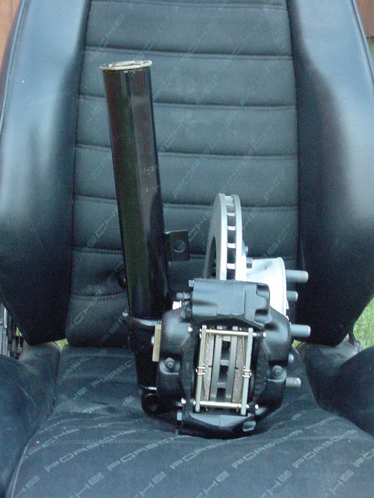 Projects on the Front Burner, Back Burner, and the microwave oven! up on deck- project #1 Dan Callicott (aka Xitspd) graciously donated the old rear flared qtr panel chunks off his old race car. (he now has super mongo FG wide flares and a 3.6) these allowed him to run a 225 wide tire on an 8 inch rim. groovy...... Project number 2- The wonder Box thanks to 914 club member Jeff Bonanno, he donated to me a lot of stuff to rebuild a transmission. so now i have a box of new trans parts, and a completely detailed sideshifter case. Recently i scored a huge deal. on the PP 911 classifieds, some dude needed a 4 spd 901 gone ASAP. a call to McMark and my newly acquired 911 ALUMINUM cases 901 is on its way down here. props to Mark and Brad now here is where it gets sinister. Can you say short geared AL case 901?? the acquisition of this new tranny made this whole deal possible. it has one or two gears i may use, or sell to fund this whole adventure currently a 901/914 box has the following gearing A F N V ZD The 4spd box i picked up has A HB S ZD HB is a great gear for the v8 guys! my plan is to sell that to fund this deal. the wonder box will be a close ratio 1-2-3-4 box with a stock ZD 5th for driving/cruising. here is the new gear ratio A F ZD-flipped S ZD should be fone none the less PROJECT 3!!!!! Big Brake swap for the front.... well....i saw this done on 2 peoples 914's and figured i needed to do it too...... DWD and all. Volvo 4 piston Calipers on 911 vented rotors. working with a club member or 3 on this project. Attached thumbnail(s)
