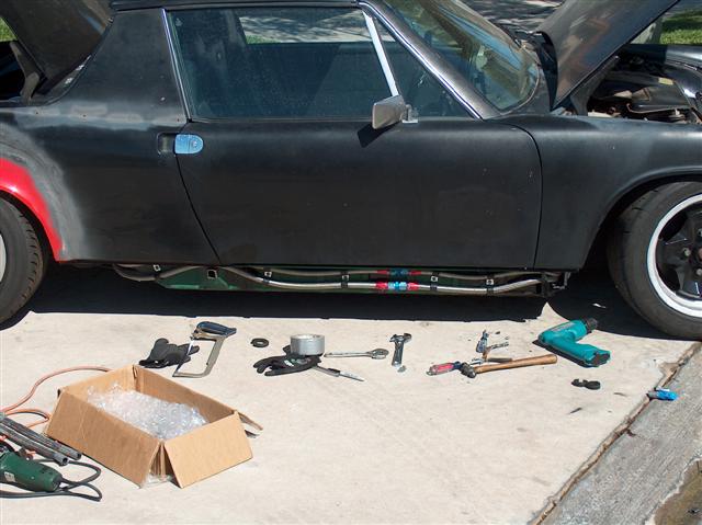 the toils of my labor..... it was raining....shortly thereafter i put the rainshields on the carbs.... can you say 60+ PSI at idle (cold)? oh yeah.... no more hot low pressure issues here! no siree bob!