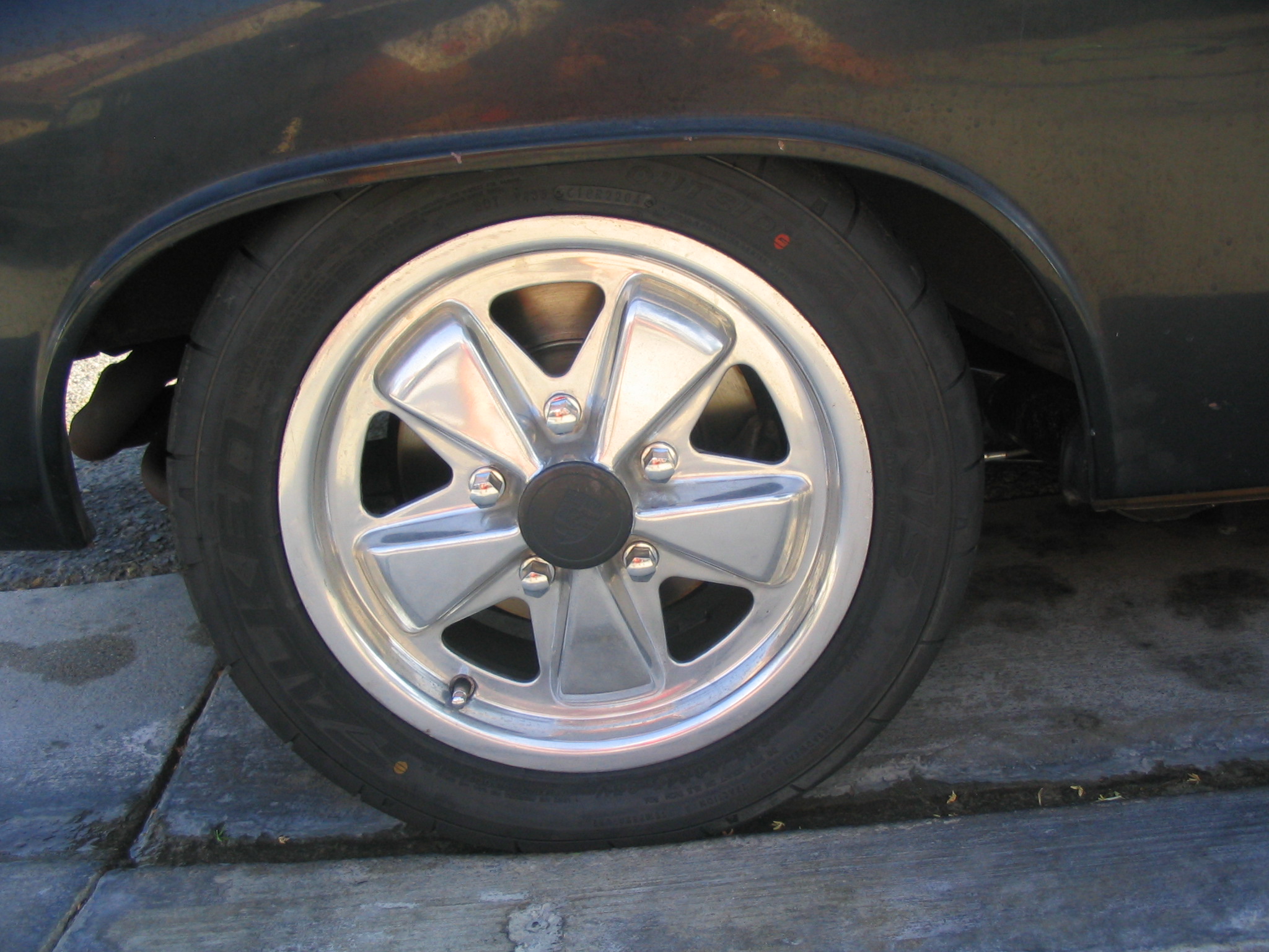 1973 2L, Fully Optioned Ride MOTOR: 2,0 L with high compression pistons. Weber 44 Idf's on CB tall manifolds with rainshields Mallory Unilite Dizzy Mallory Hyfire CDI Box Magnecore 9mm Wires Bosch Plugs BIG cam 2,0 Heat Exchangers, and a Bursch Muffler Suspension: Koni Red Adjustables (FR) Bilstein HD Sport coilovers ® 19mm 911 Torsion Bars 140/180 lb/in Springs 24mm Tarett Hollow Adjustable Swaybar 930 Tierods Welmeister Bumpsteer kit, weltmeister poly bushings (fr/r) Stock Rear 16mm Sway Bar Eric Shea 5 lug converted trailing arms Brakes: 911 Vented rotors (fr) 911 M calipers 19mm Master Cylinder Stock rebuilt rears 914/6 rear rotors Tires: Falken Azenis 205 50 15 schtickies Attached thumbnail(s)