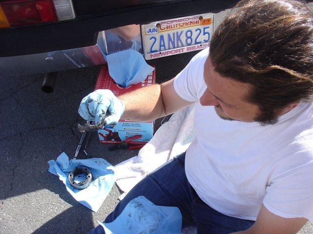 It's been a long time and a lot of little things have happened. Here's an updated list of where I am on my Get-The-Car-Running project. 1. Pull the motor and fix oil leaks, pull the ceramic lifters, clean everything, install carbs (for now). I ended up selling my motor (in a round about way) and so now Jeff Keyzer has it and I have his old 1.7 motor to put in my car. Which is fine with me. As long as it drives, I'm happy. I'm getting a set of VW bus carbs to put on the motor instead of fuel injection. Why, you ask? Two reasons: first because I expect it will get me on the road the quickest, and second because I'll learn something by using them. I expect that they're a great option for small motors. 2. Fix the hell hole and firewall rust, plus weld all the little holes in the firewall. New battery tray and new rear trunk pivots. DONE!!! 3. Fix the 'access hole' some DAPO cut in the rear trunk. The top starter bolt is not THAT hard to get to. DONE!!! 4. Clean and paint the engine bay and rear trunk. Not until the welding work is done. 5. Clean and reseal the transmission and replace the speedo angle drive. DONE!!! I've also decided to execute my five lug conversion while I'm doing the rear end. I already had the drilled hub installed. Marty Yeoman is going to machine some four lug rear rotors for me and I'll get a set of rear calipers rebuild by Eric Shea. DONE!!! The sunny weather is really pressuring me to keep moving on this.