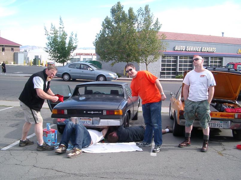 Jim Tabor, Andy Schmidt, Jeff Keyzer, Fiid Williams and I all drove out for this years desert event. We had a great time. My black 914 only made it as far as Reno before I lost a CV joint. The real pisser is that I replaced all four CV joints only around 500-1000 miles ago. Regardless, I had a great time. It was a real adventure, but at the end of the trip, we were all rolling home under our own power. So I call that a success. Attached thumbnail(s) | Search My Blog