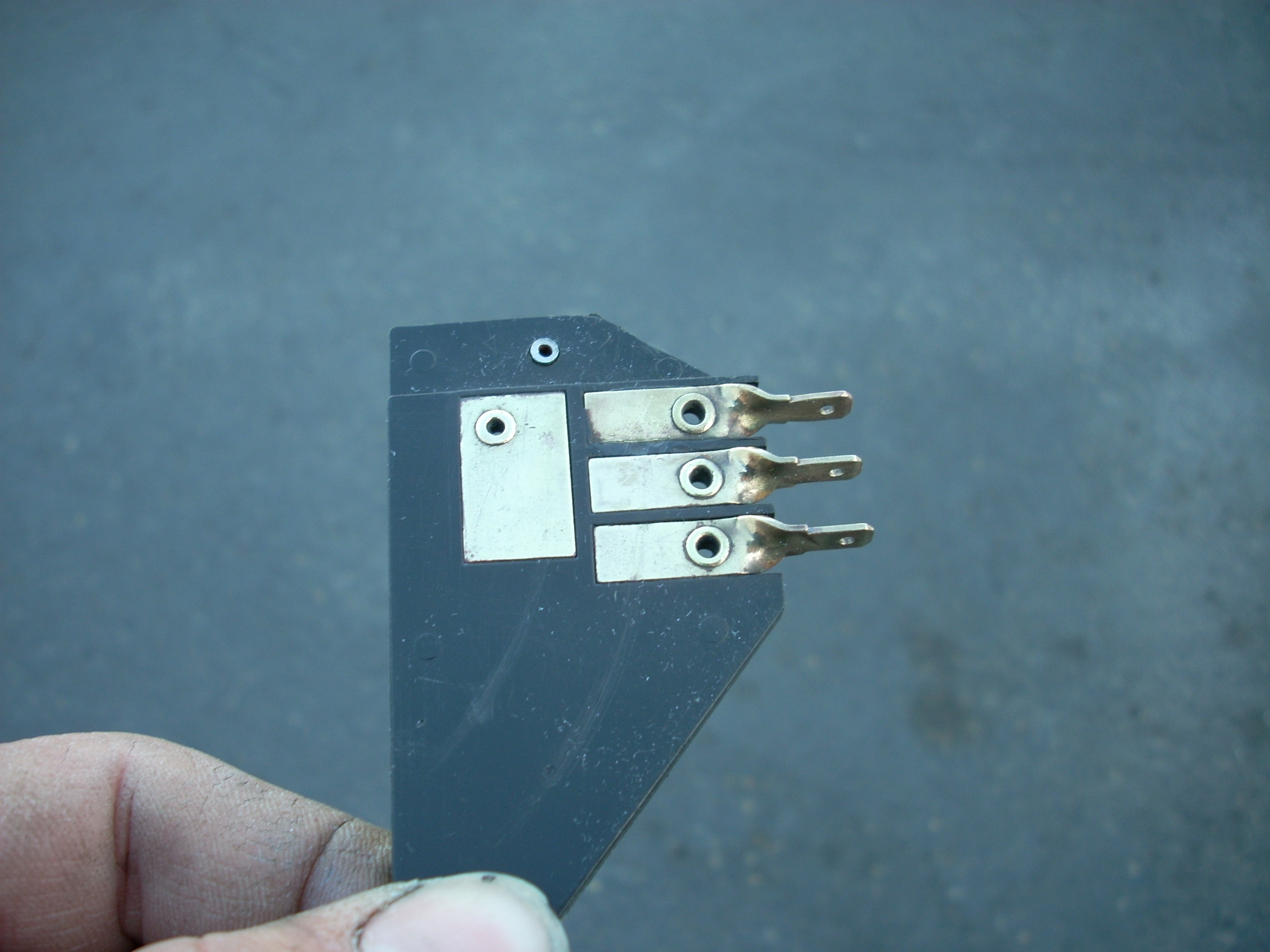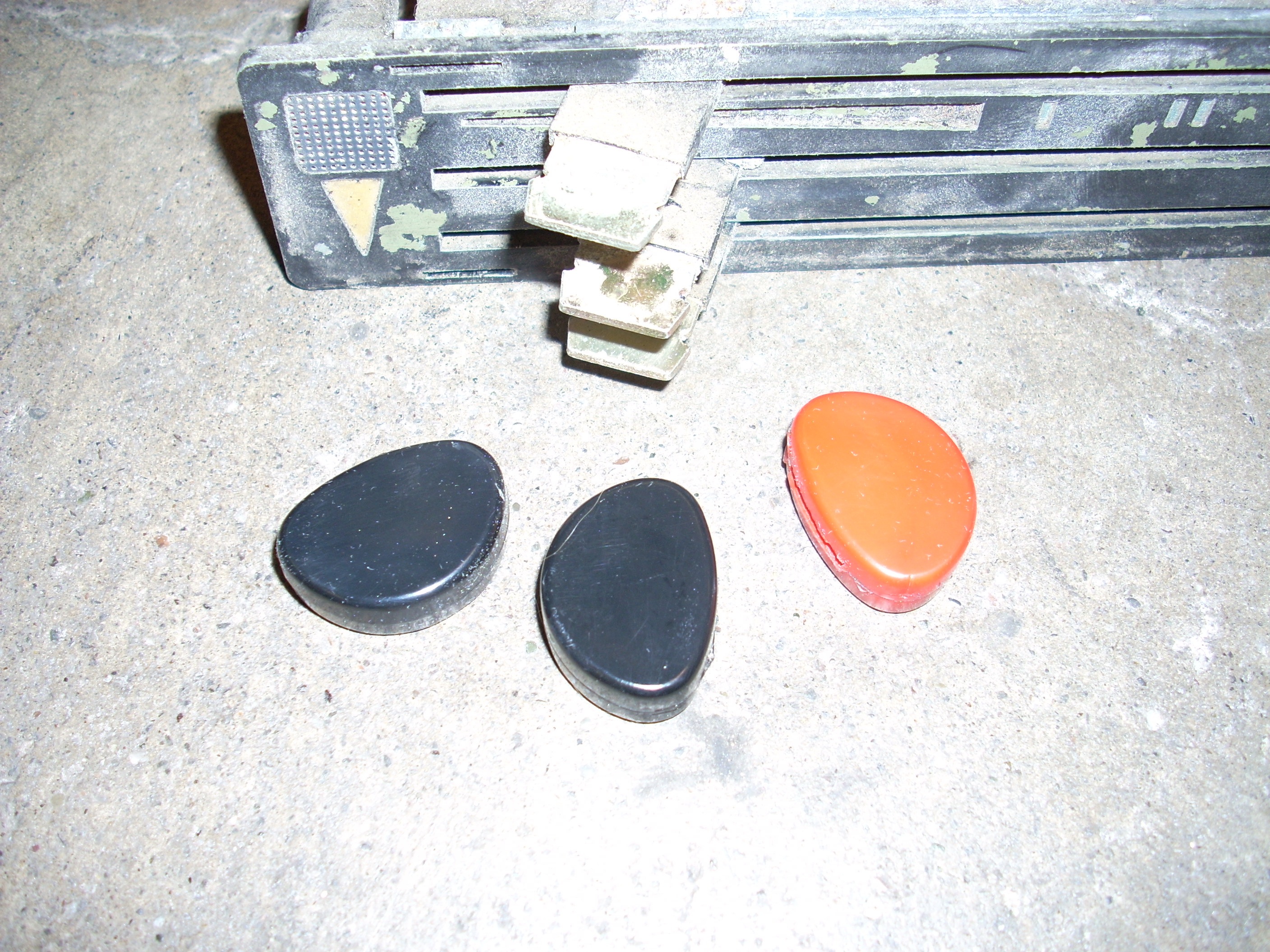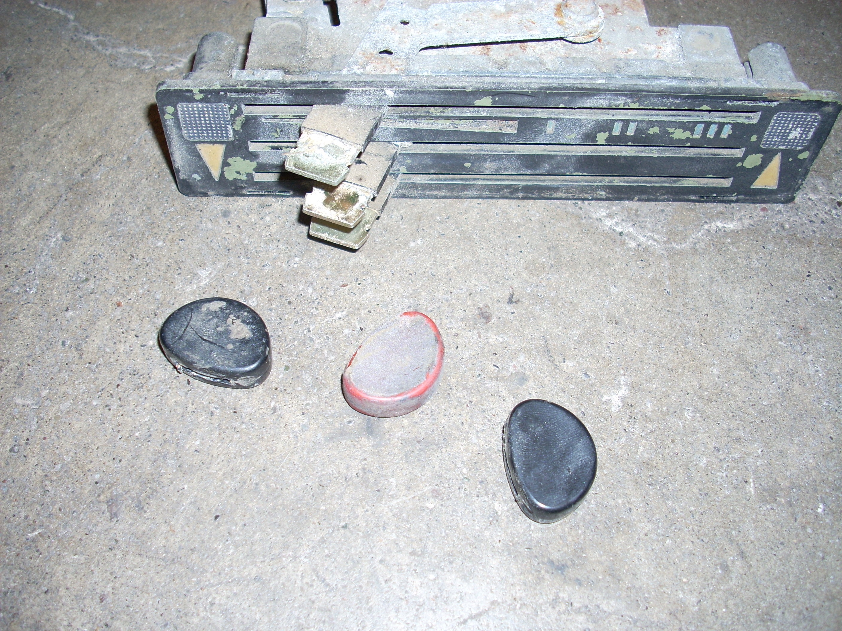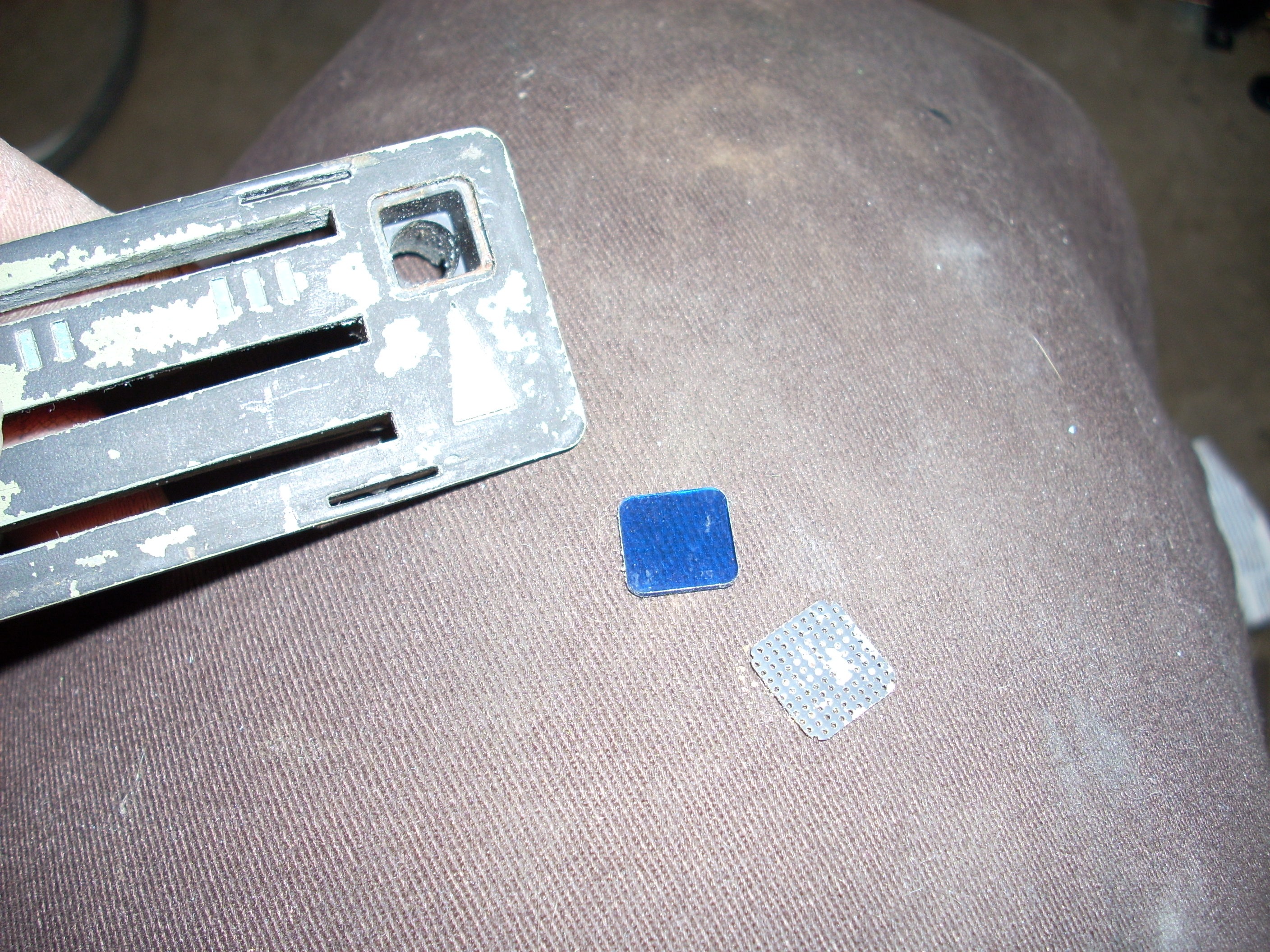 The official first part has begun... These heater controls are the early/european type without words. I like that. Here's what we had to start with: Pulled off the trim ring and hit it with some fine steel wool. Unfortunately the chrome is pitted, so it'll have to be replated. Nasty knobs pop right off. After a thorough cleaning with alcohol and a little polish, they look like new. I cut the rivets holding everything together. Two are holding the cast front section to the rear plate. And two are holding the 'circuit board' to the plate. I also removed the control arms by undoing the circlip and pushing out the pivot pin. The 'circuit board' cleaned up really nicely with a Dremel using a wire wheel tip for the cleaning and a felt pad tip with Blue Magic metal polish for the shine. The red and blue colored lenses and the aluminum 'grills' pop out with a little push from the back (through the light bulb hole). The white and blue accent pieces pop out using the corner and edge of a razor blade. You can see all the blue 'tick marks' and one of the arrows (with a broken tip). Now that the face was relieved of all the 'extra' pieces, I removed all the old paint and sprayed it with flat black enamel. I cleaned each individual blue piece by rubbing it on some 1500 grit sandpaper taped to glass, then rubbing it in some Blue Magic polish. I then glued each one back in with gel type SuperGlue. Keeping track of and working with those little suckers is a major PITA! Then I glued in the lenses, and finally I sanded, painted and glued on the aluminum 'grills'. All of the arrows were either broken or missing, so I'll have to search for replacements. I wouldn't mind finding some reflective material to use instead of plain white arrows. The arms and plate will be sent out in a batch of yellow zinc plating. So until those come back from the platers, this episode is over. Time spent this episode: 2.5 hours Total time overall: 2.5 hours Total cost of this episode: $0 Total cost overall: $0