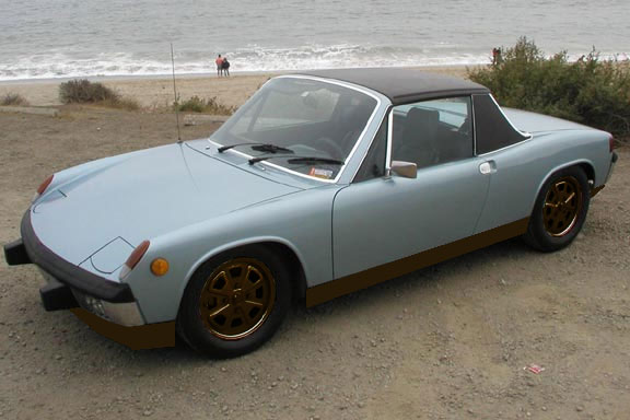 I've been trying to think of a way to bring my black 914 back to its original Marathon Blue Metallic, but keep a bit of 'custom flair' to the car. Here's what I'm thinking. Brown valences and wheels. So far everyone I've told this idea to has looked at me like I was crazy. Oh and they told me I was crazy. So I made a mock-up image to help those 'unbelievers' convert to the blue/brown cult. Feel free to post a comment to this entry and tell me what you think. Attached thumbnail(s)